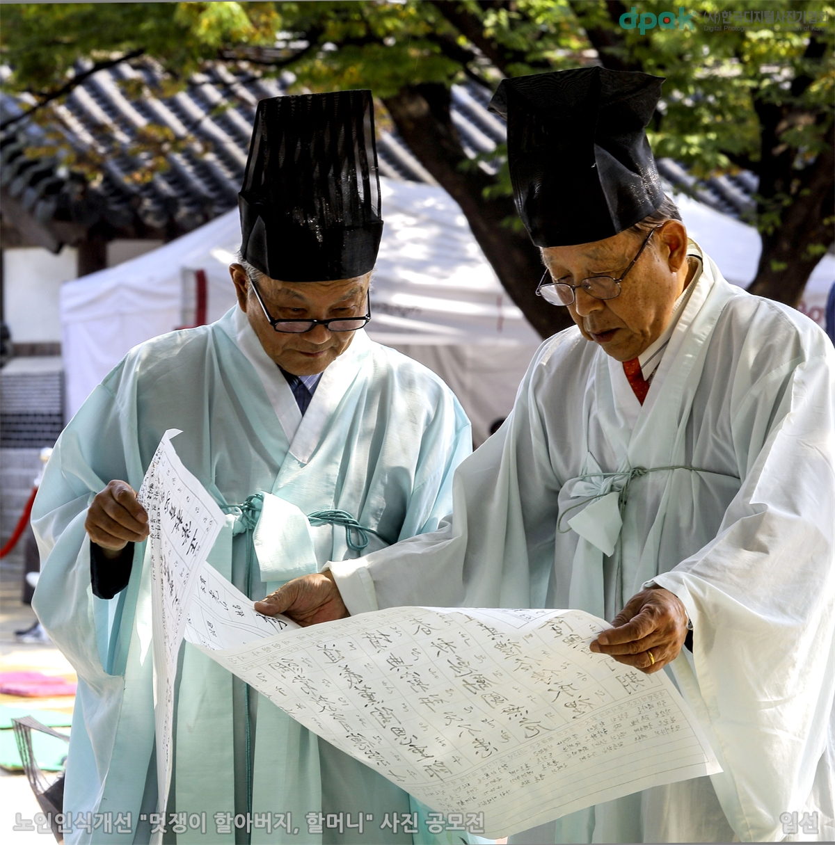 Á¶¼±½Ã´ë °ú°ÅÀçÇö Çà»ç¿¡ Âü¿©ÇÑ ¾î¸£½Å µÎºÐÀÌ ¼·ÎÀÇ ´äÀ» ºñ±³ÇÏ¿© º¸°íÀÖ½À´Ï´Ù.ƯÈ÷ ¿ÞÂÊ¿¡ °è½ÅºÐÀÇ ¾È°æ³Ê¸Ó·Î ¹Ù¶óº¸´Â ¸ð½ÀÀÌ ÂüÀ¸·Î ÁøÁöÇÕ´Ï´Ù.