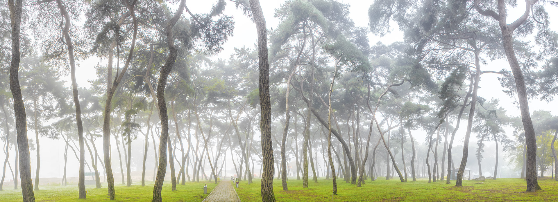 안개 자욱한 영동 송호리 솔숲에서!