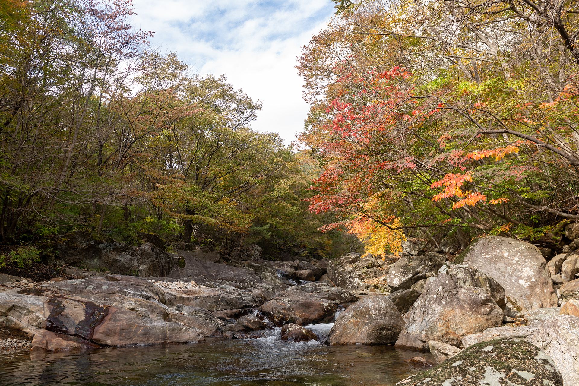 예전보다 늦은 단풍을 준비하는 지리산 피아골