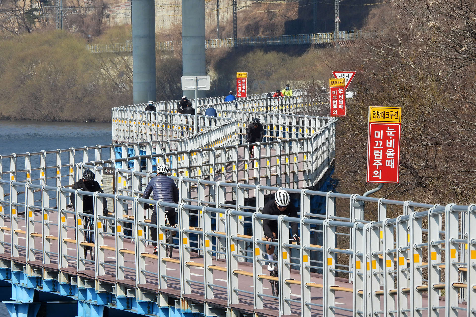 공간이 없어 물위로 연결한 낙동강 자전거 종주길.