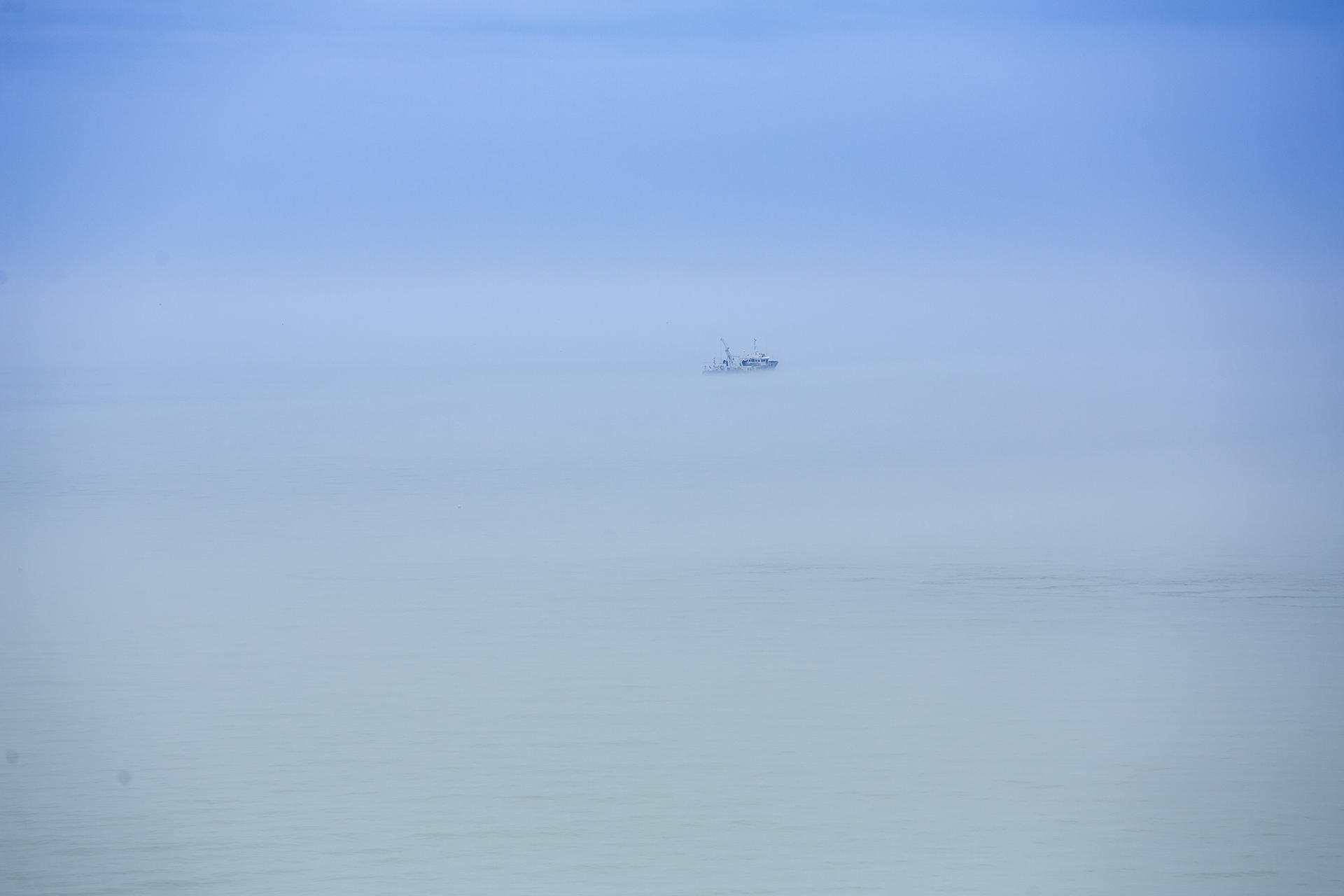 자욱한 안개속에 배한척이 운항을 하네요