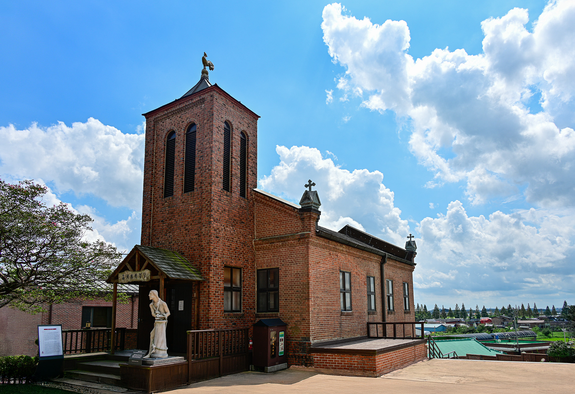 종탑의 꼭대기에 숫닭은 베드로의 배신과 회심을 상징한다.