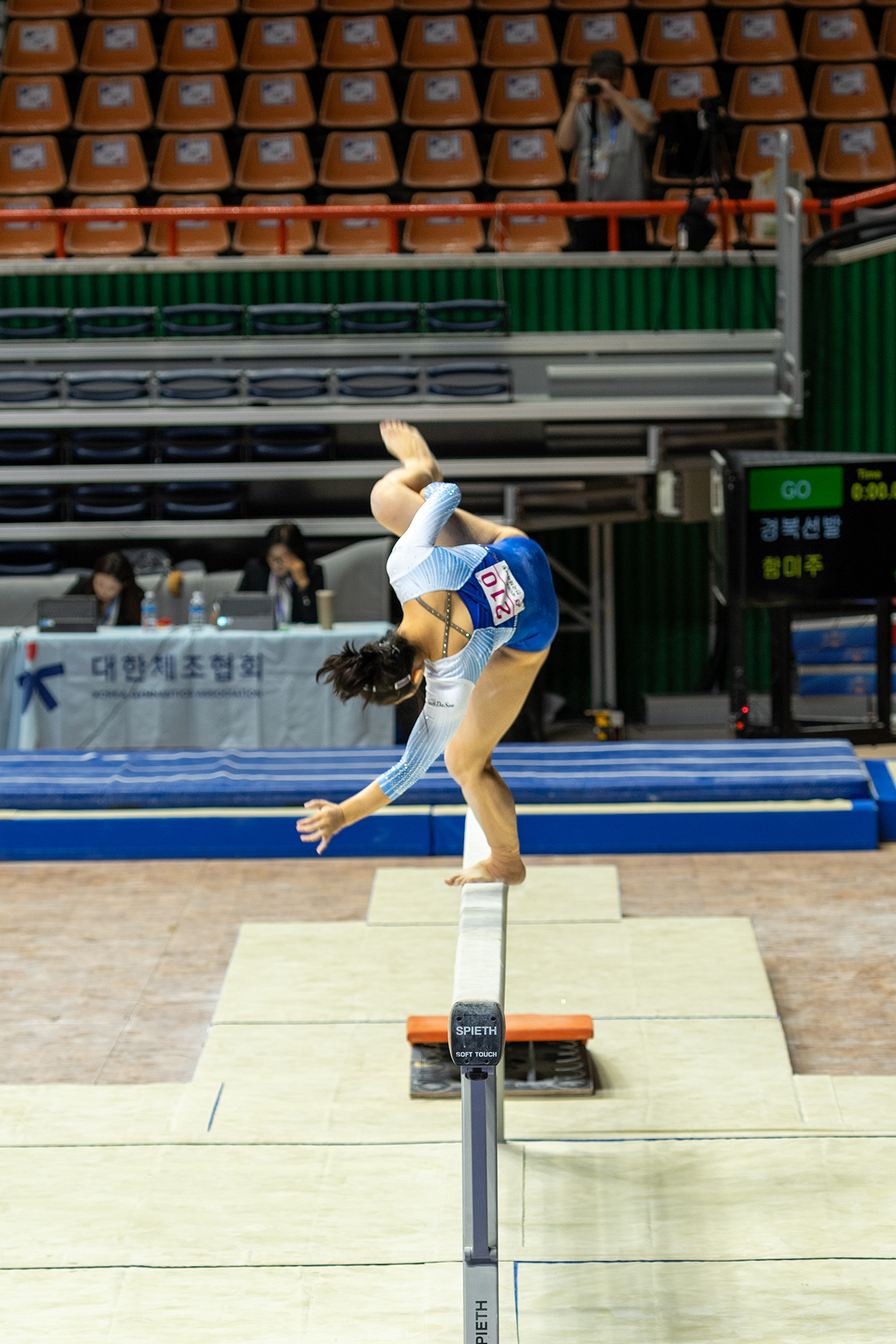 평균대 시합에서 멋진 기술을 구사하며 회전묘기를 한 후 안착?