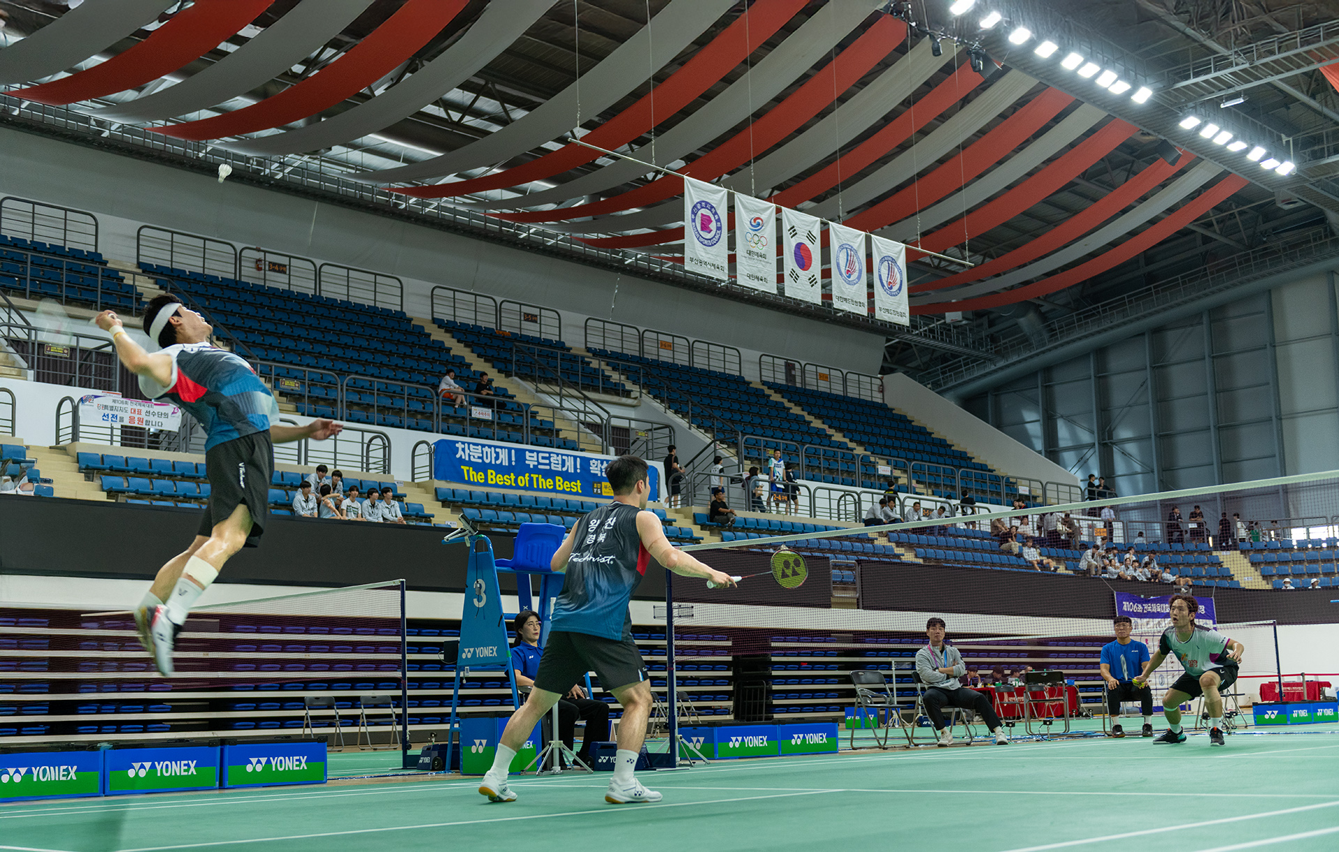 부산 전국체육대회 배드민턴 경기장에서.
