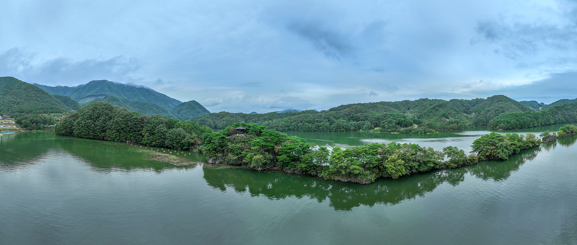 **물 위로 솟은 기암절벽(병풍바위)의 길이가 700m에 달한다.