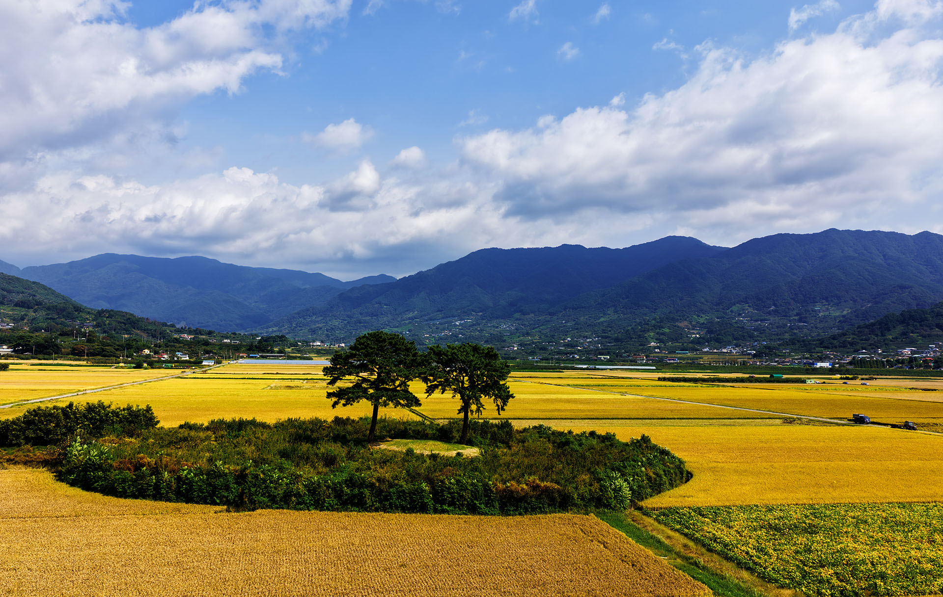 황금 빛으로 물들어 가는 들녘에 부부송이 사이좋게 우뚝 쓰있네요
