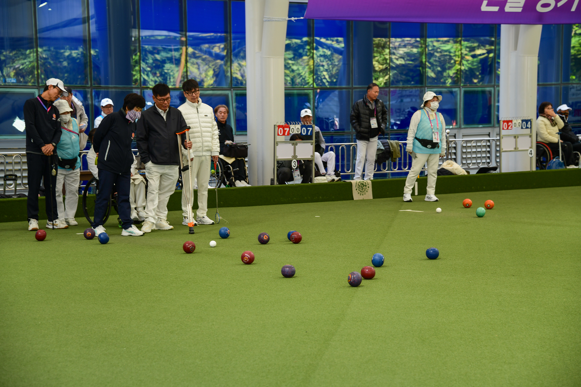 누구의 공이 작은 흰 공 가까이 가느냐에 따라 승패가 좌우된다는군요.