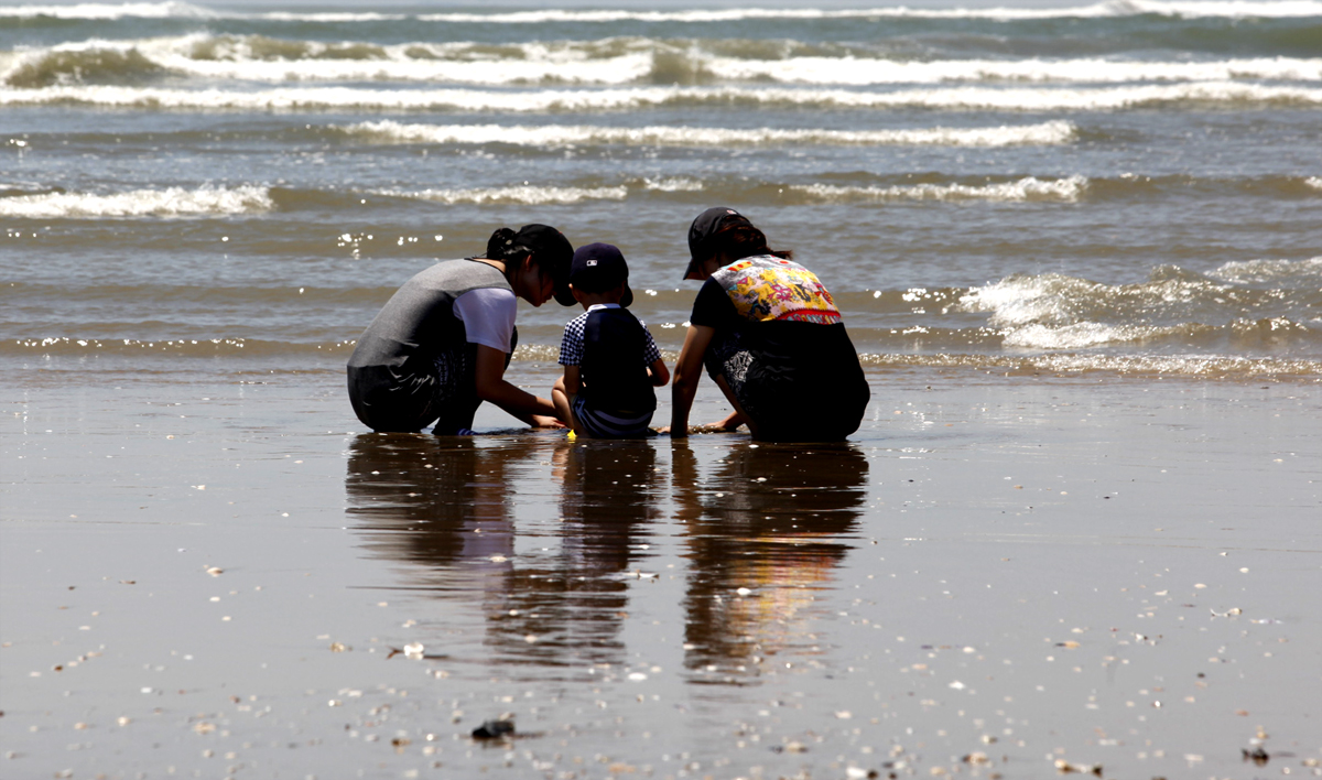 다대포에서 조개잡는 가족