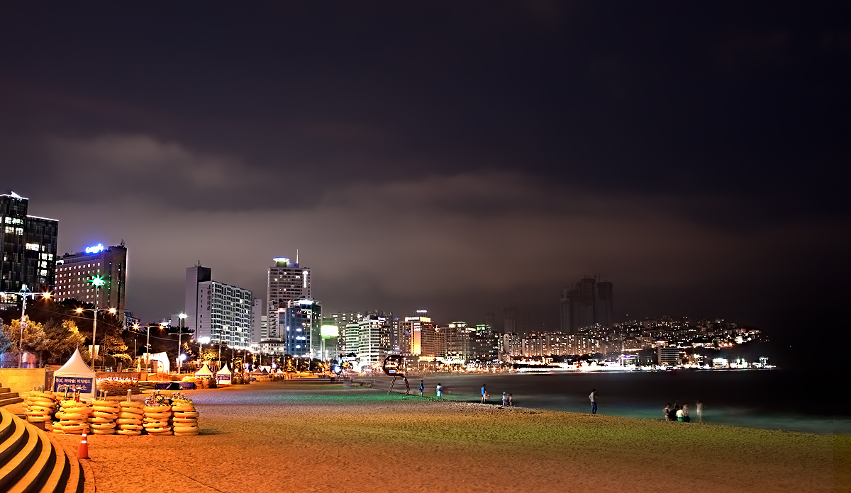 낮에 그많은 인파는...... 조용한 해운대 해수욕장