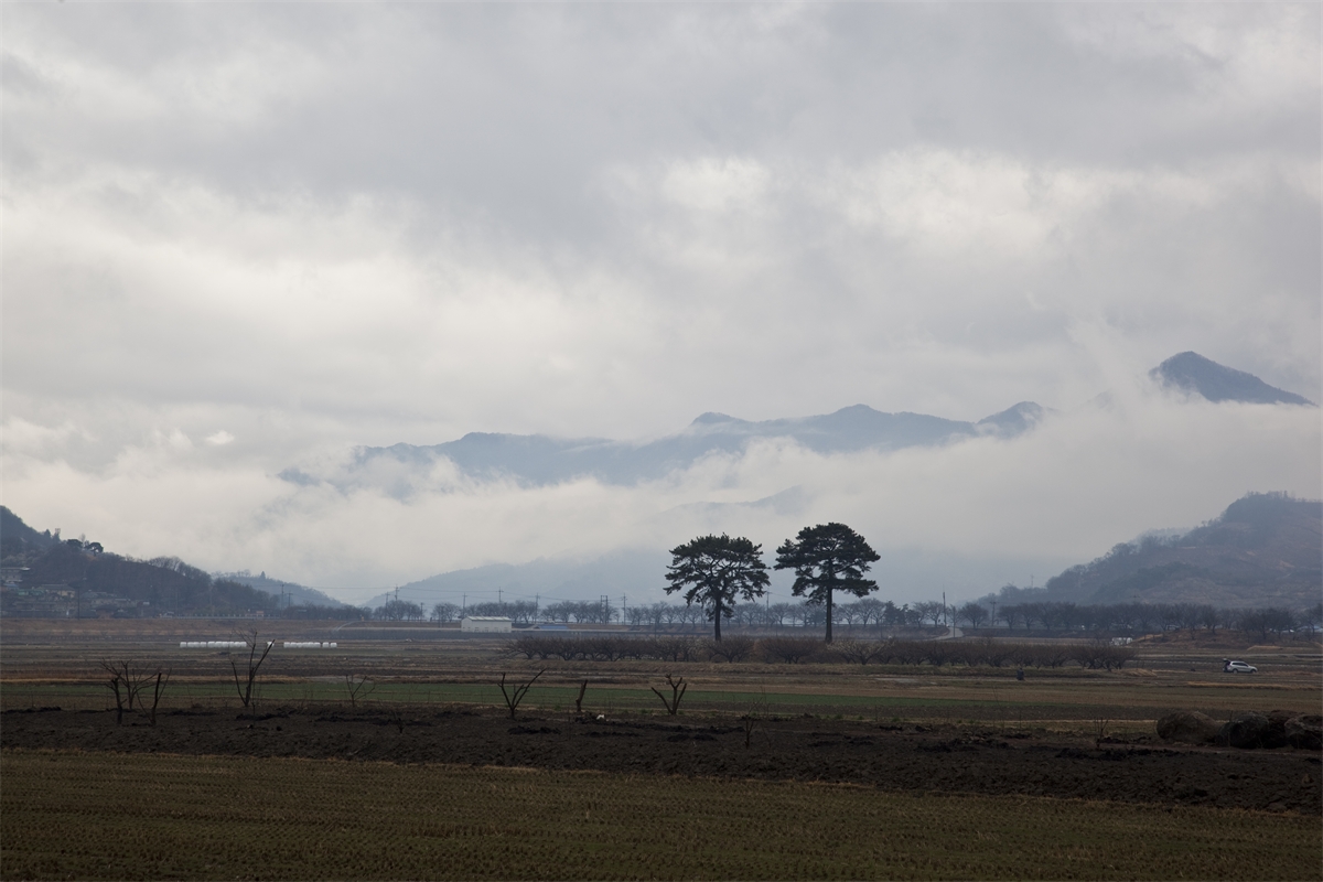 박경리 토지에 나오는 최참판댁에서 가장 멋지게 들어오는 풍경은 역시 평사리에서 바라보는 생명의 땅과 함께 악양들판 한가운데의 유명한 평사리 부부송입니다.