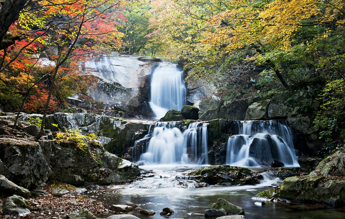 방태산 자연림 계곡에는 단풍이 많이 떨어졌는데