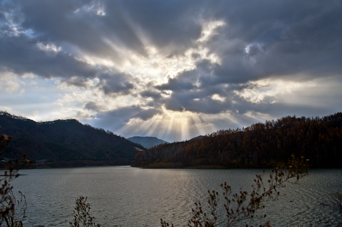 합천호에 운해가 온데 간데없어 돌아오다 만난 빛내림~~~