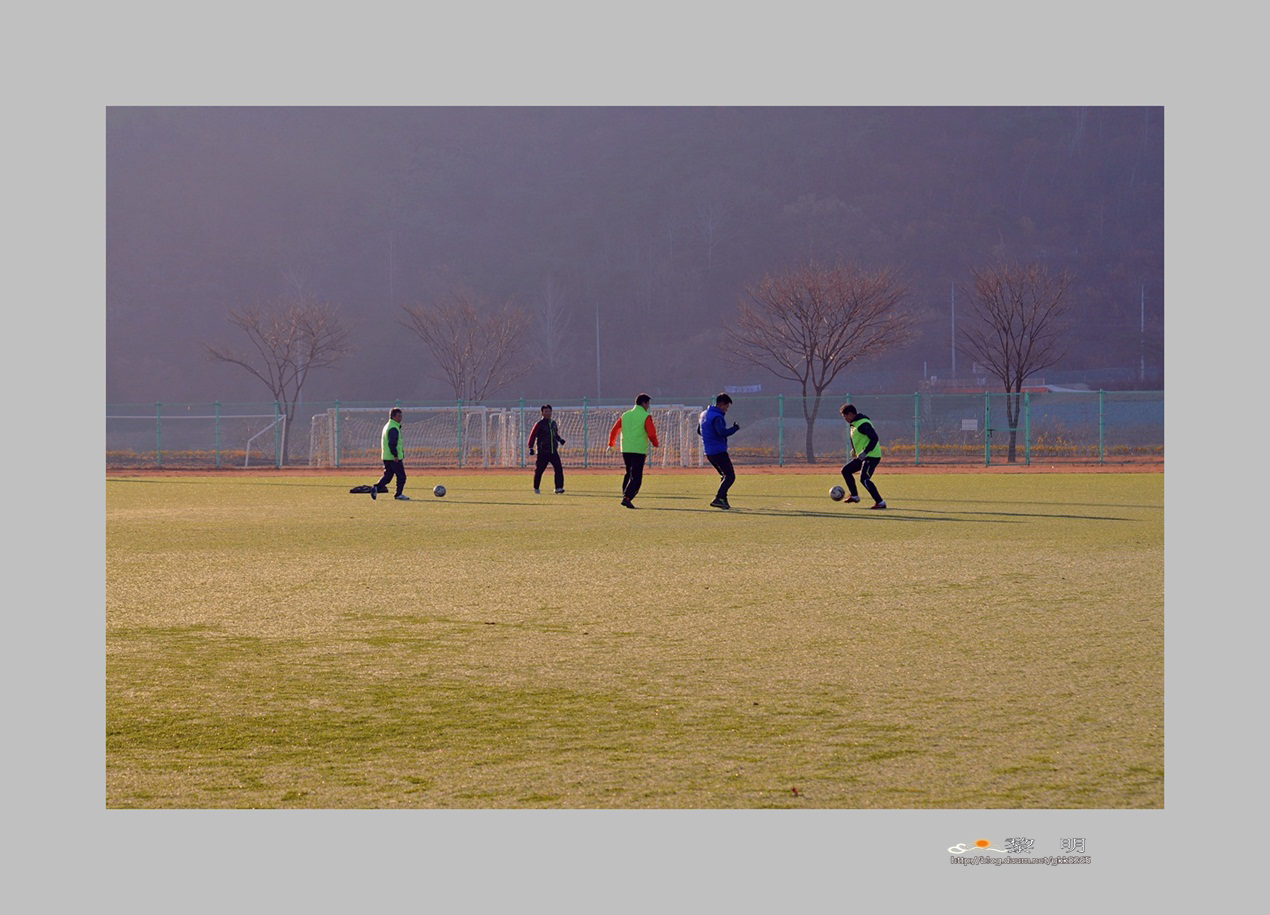 이른아침 아침했살받으며 조기축구장면입니다