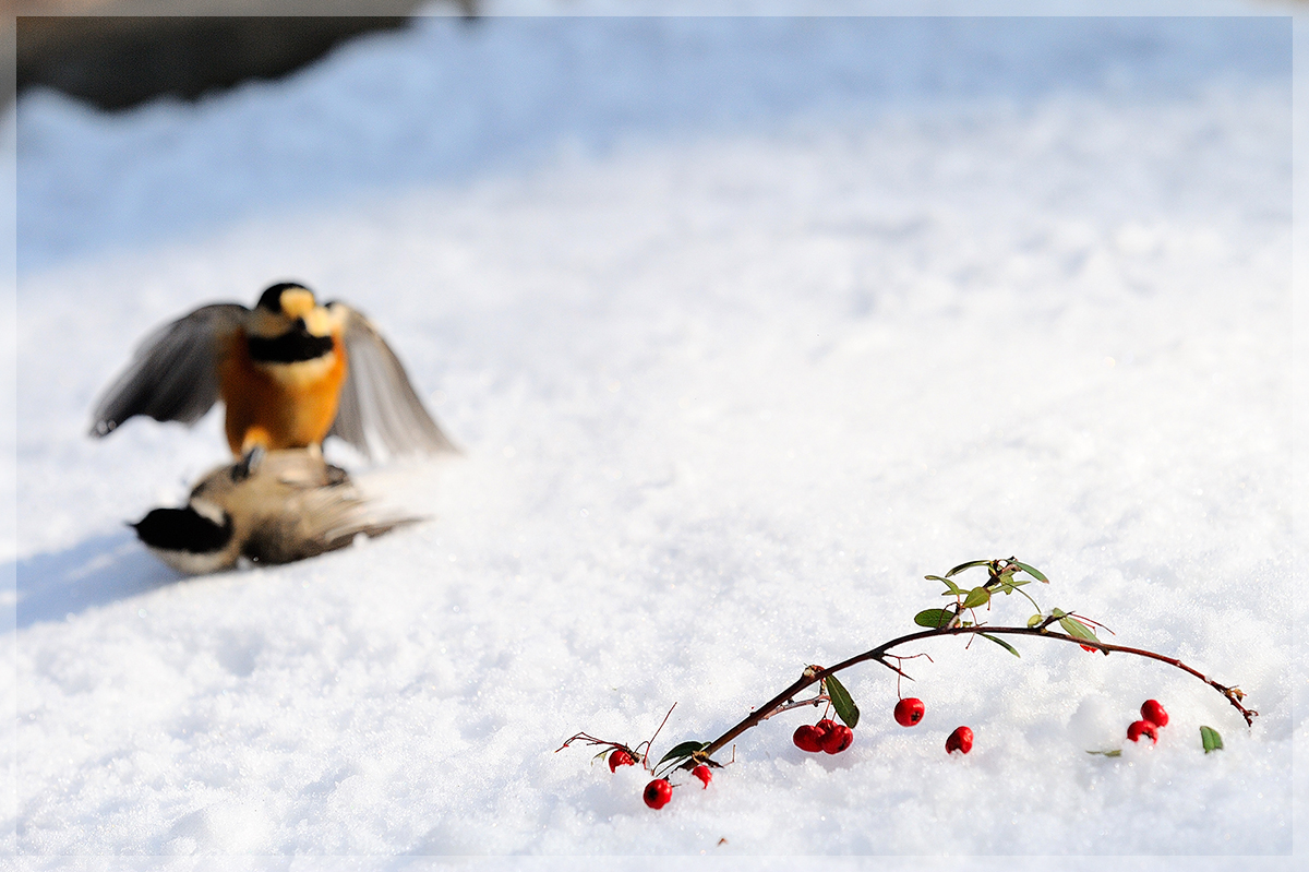 박새를 제압한 곤줄박이 ^-^