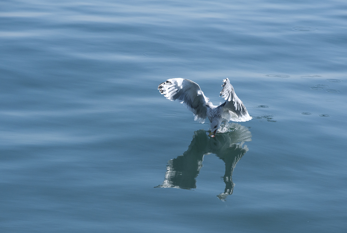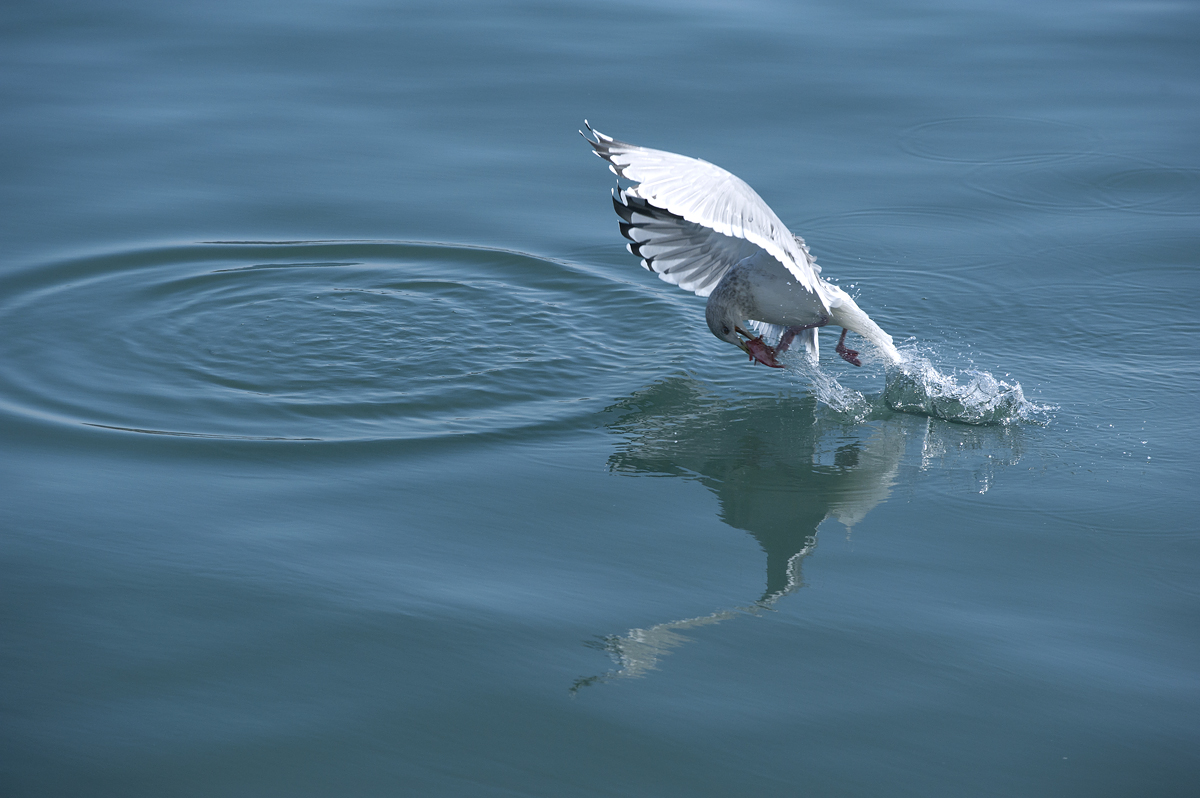 반영속의 갈매기와 먹이쟁탈을...