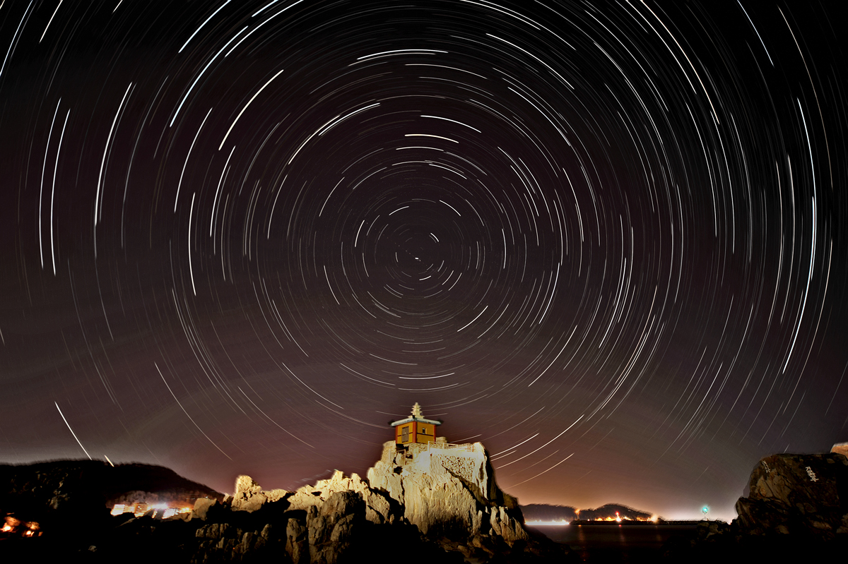 새벽 3시 반부터 1시간 반를 돌리고 돌리고 하여 담은 오랑대의 별퀘적입니다.
