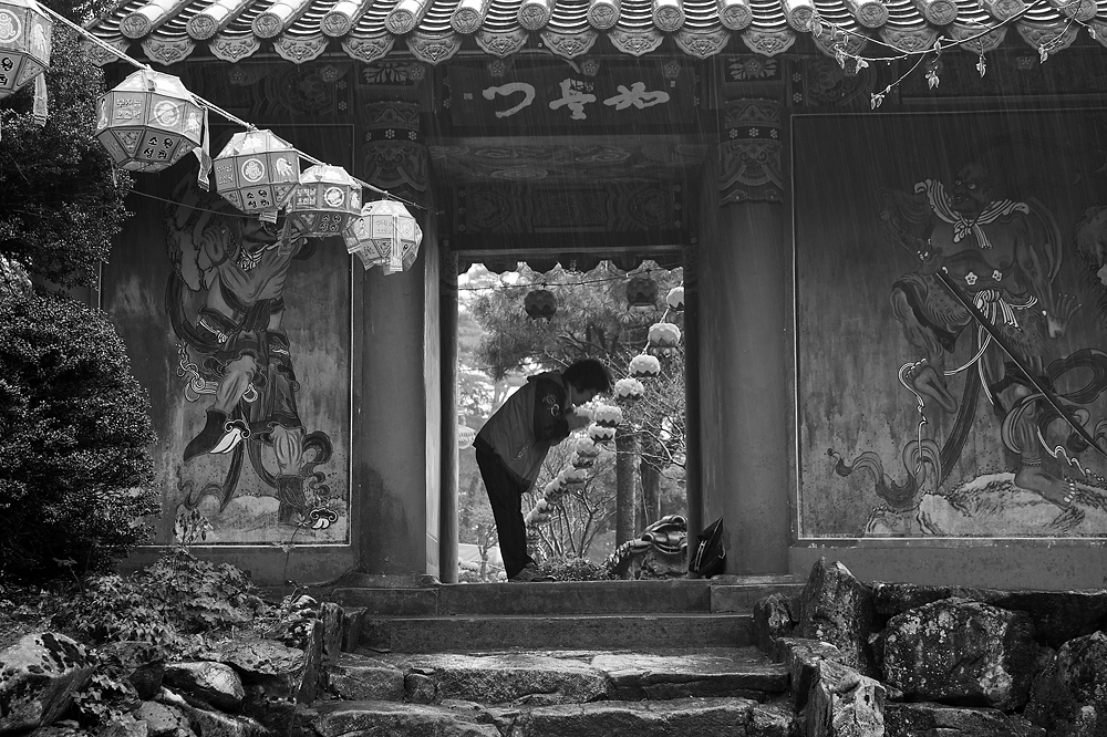 비 오는 날의 산사...