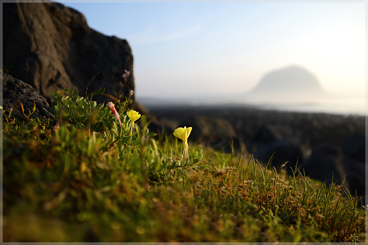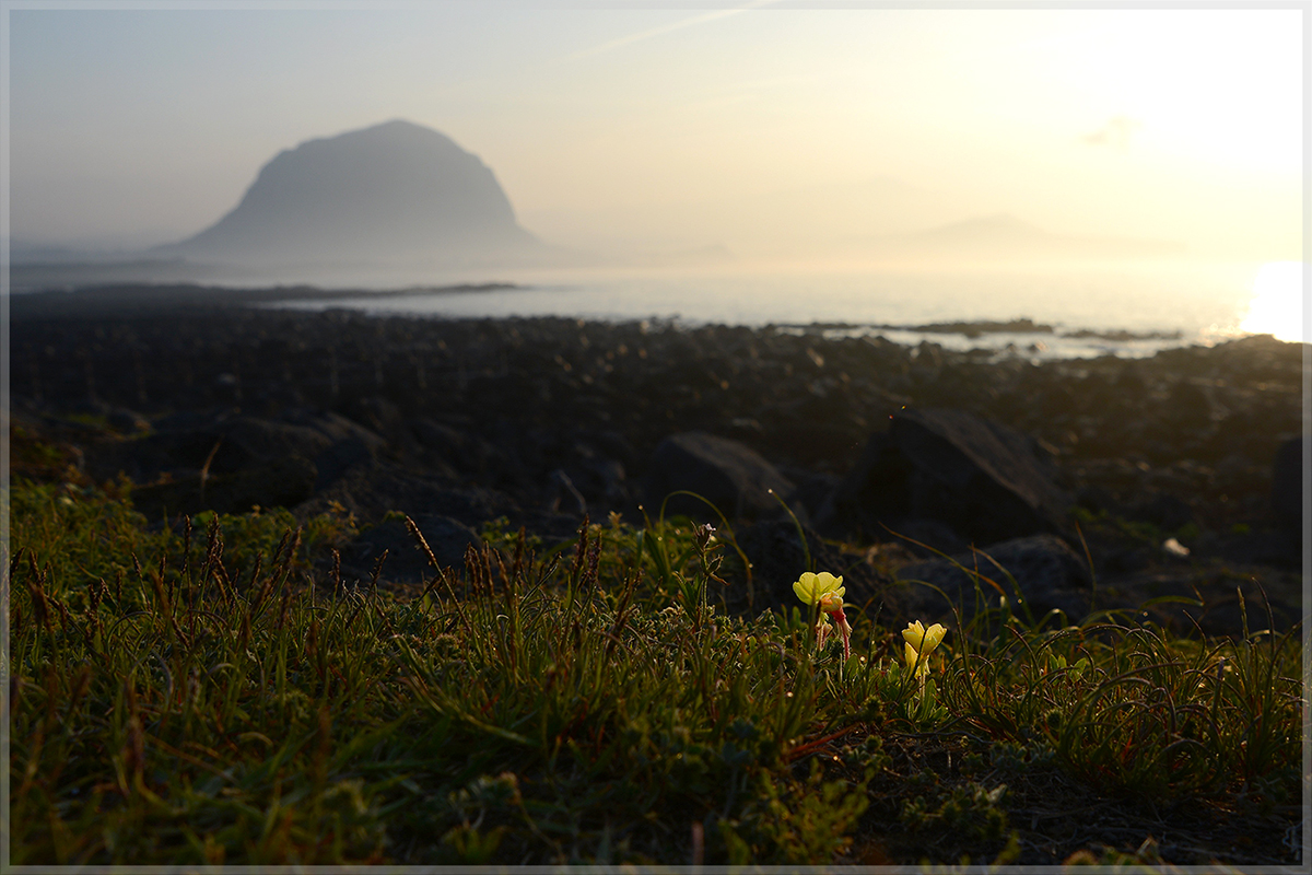 아침여명이밝아오는 해변에핀 애기달맞이꽃이