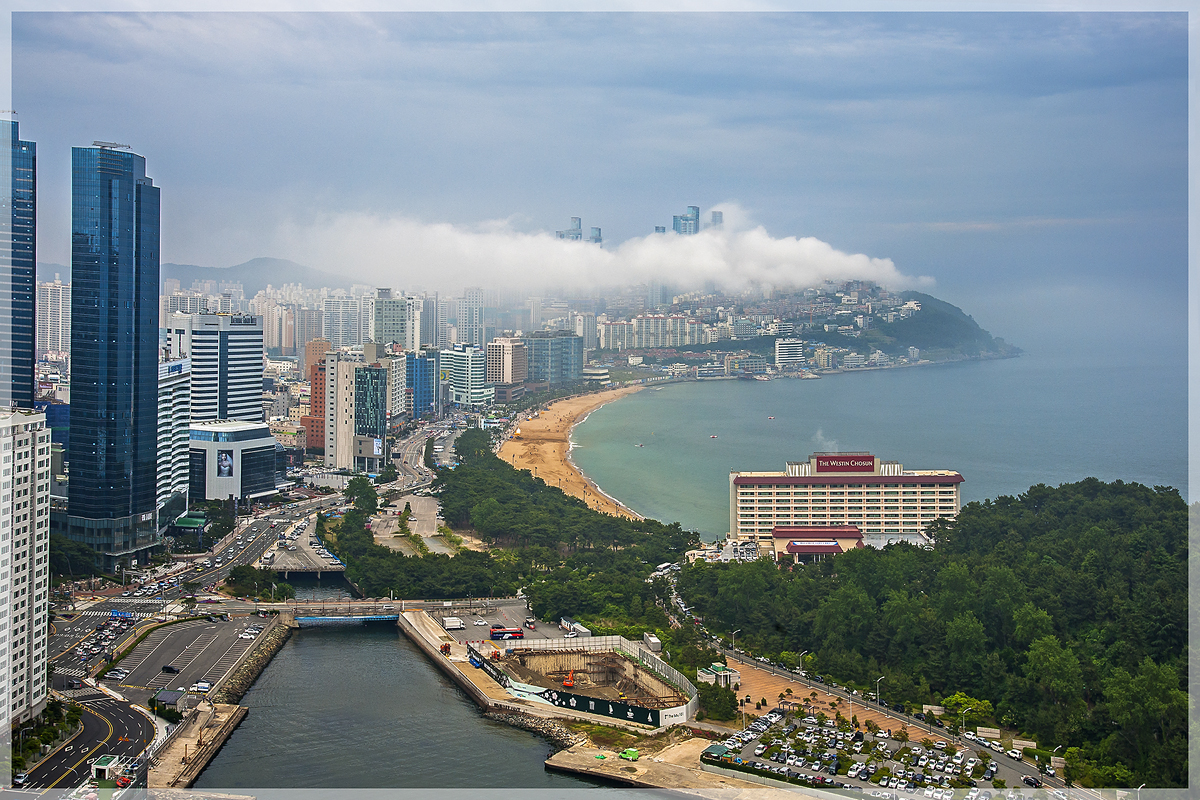 어제 해질녁에 해무가 습격한 해운대의 모습입니다.