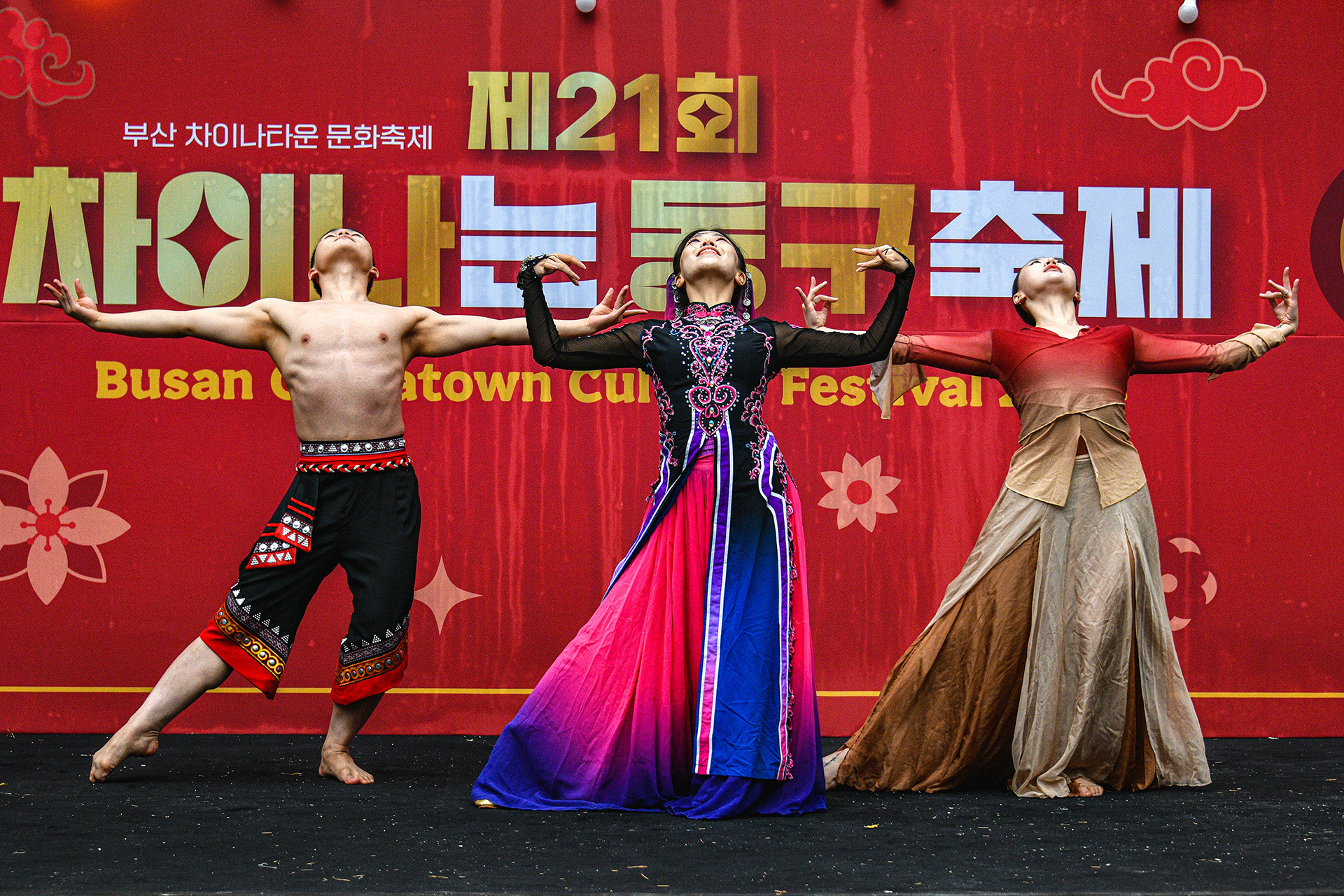 **중국 무용수들의 마지막을 감동적으로 장식 하면서 뒤로 넘어갑니다.