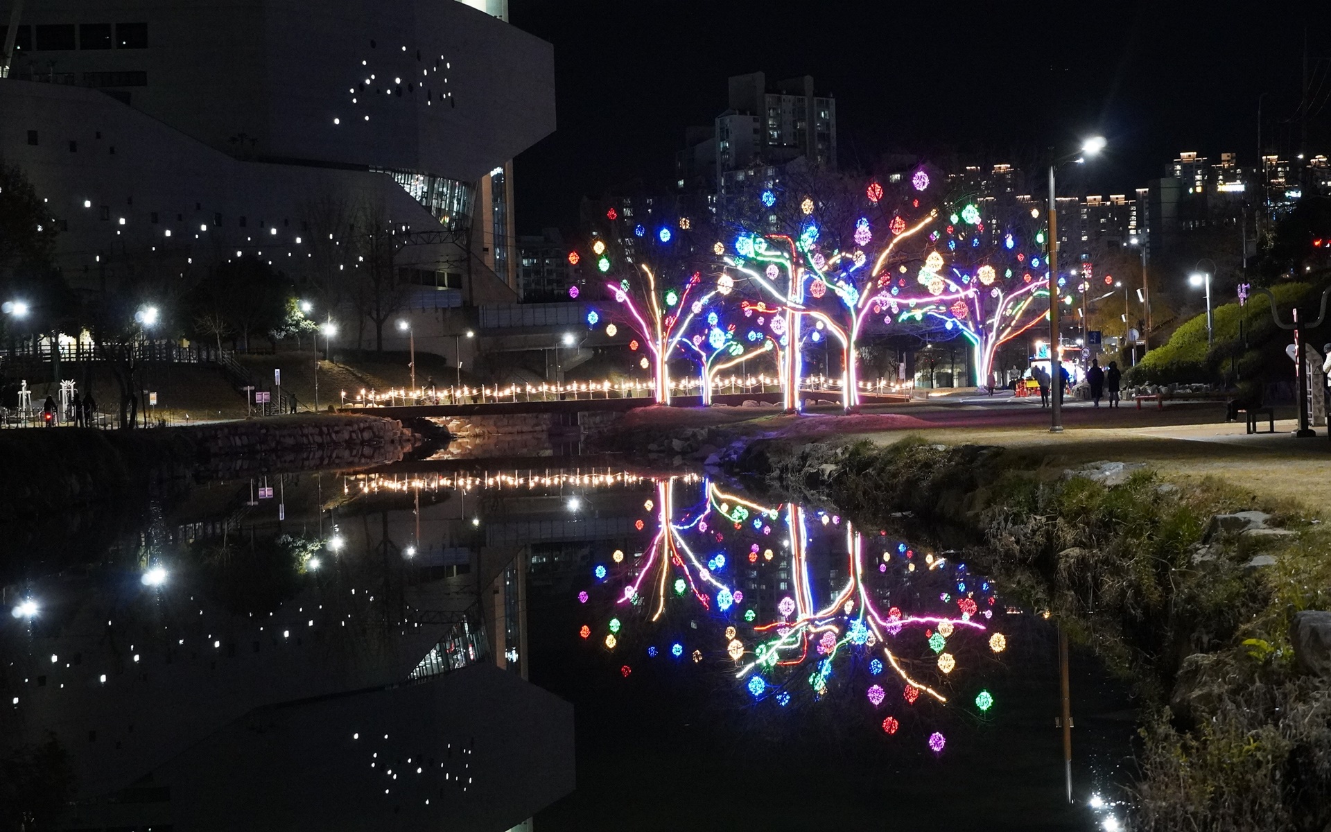 온천천 불꽃 전시회 강변에서