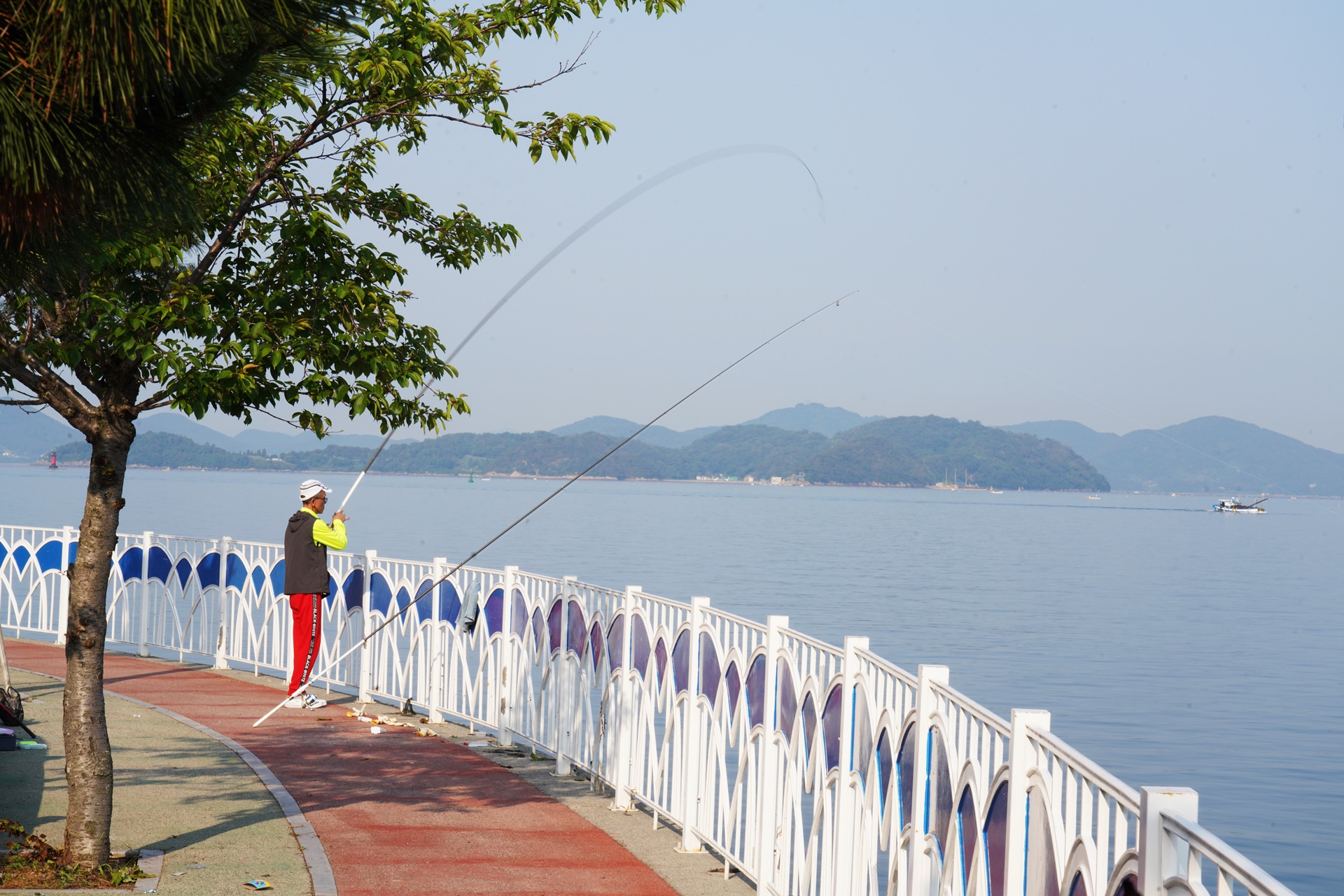 고요한 바닷가에서 낚시꾼의 마음은