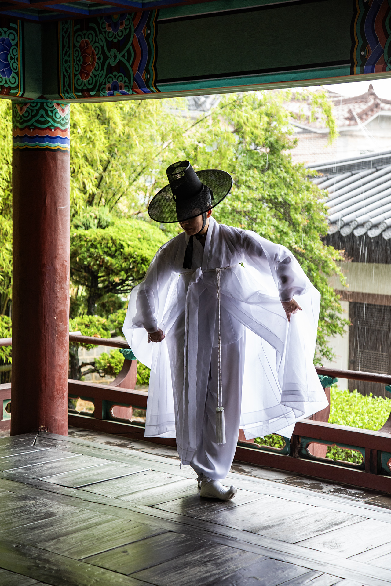 비오는 날 멋진 포즈입니다.