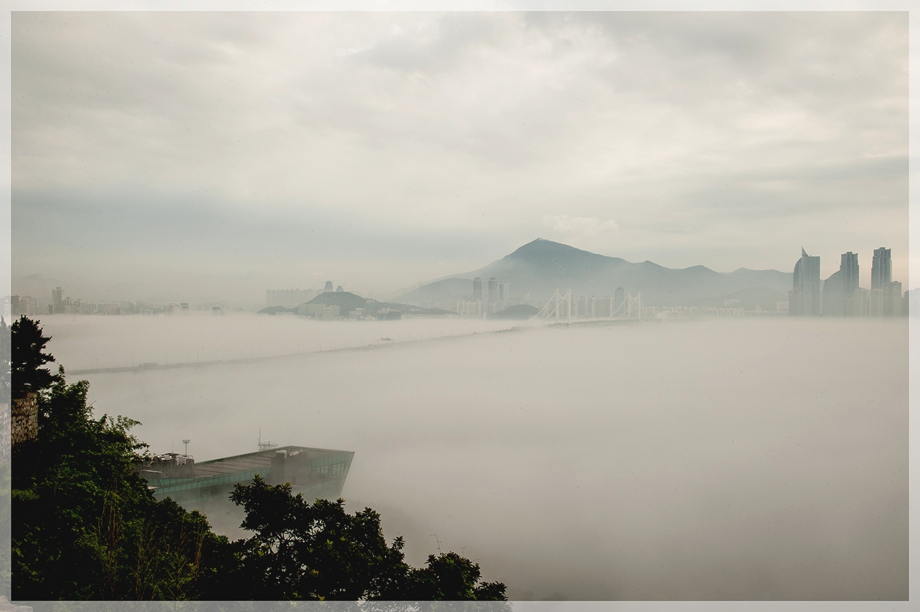 지난 2011년7월 해무속에 사라져가는 광안대교의 모습입니다.