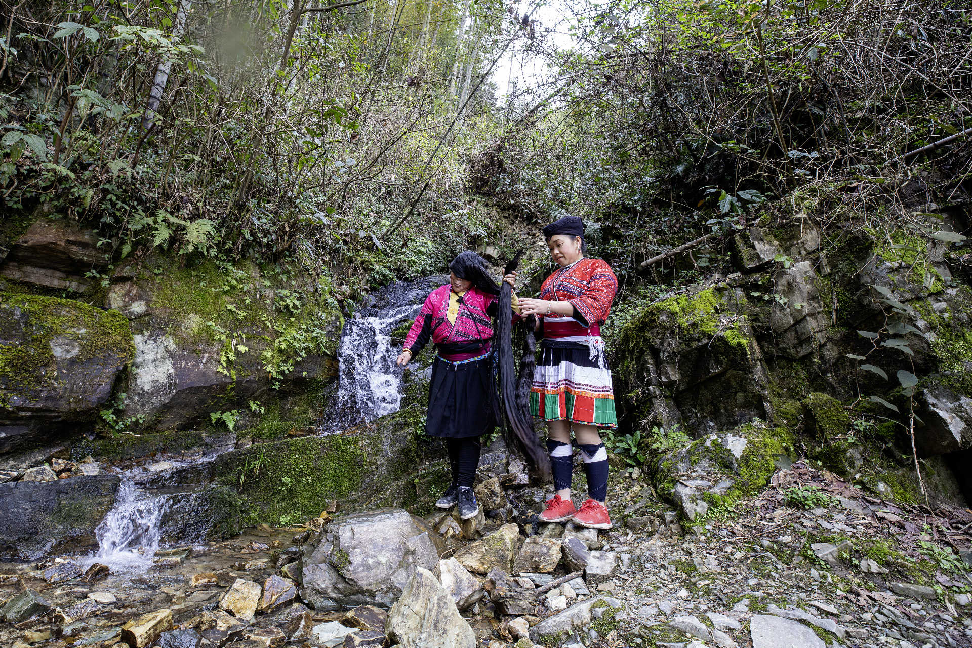 개울가에서 머리 감는 모습을 보여주네요.