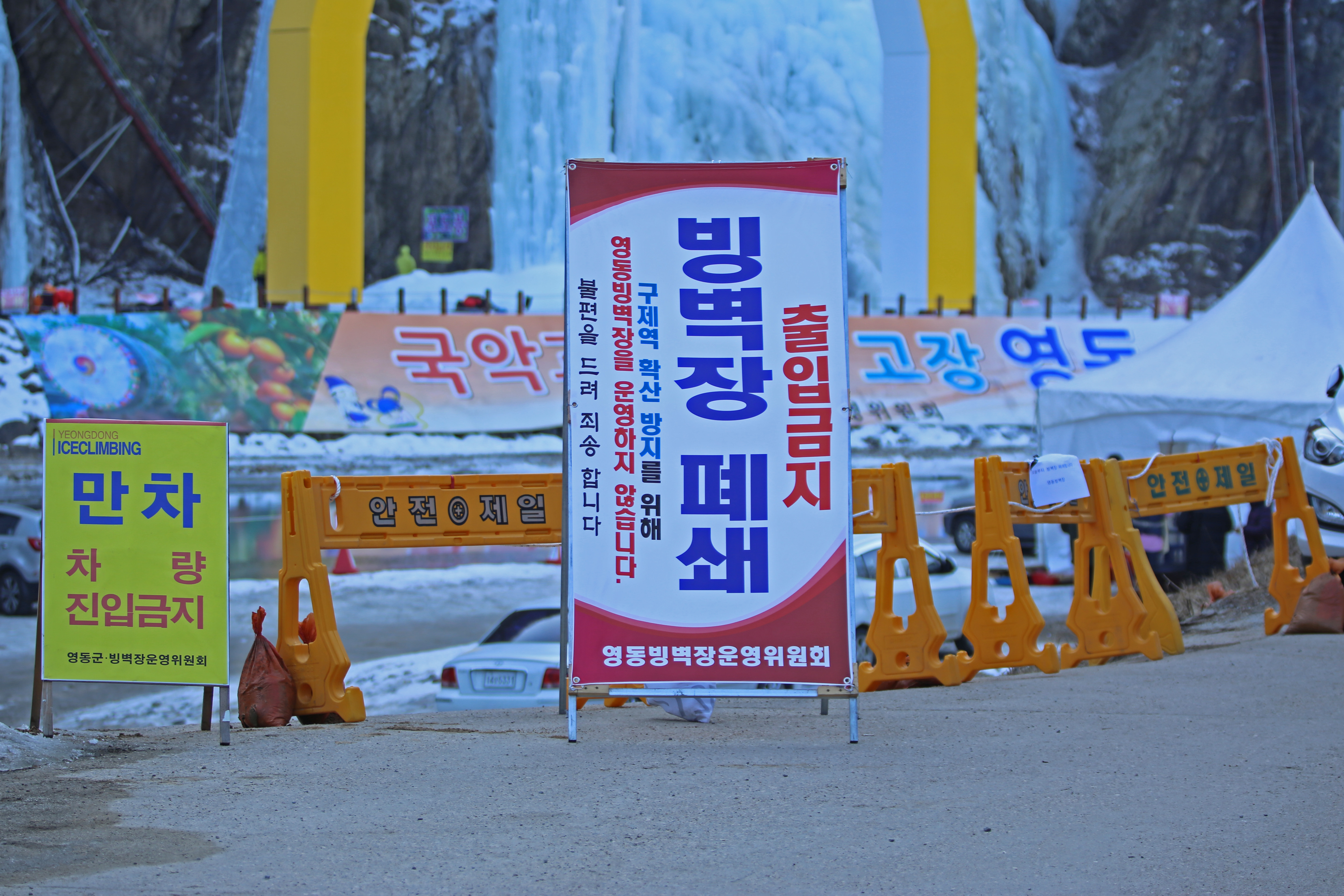 잠정 빙벽장 운영을 패쇄 한답니다.