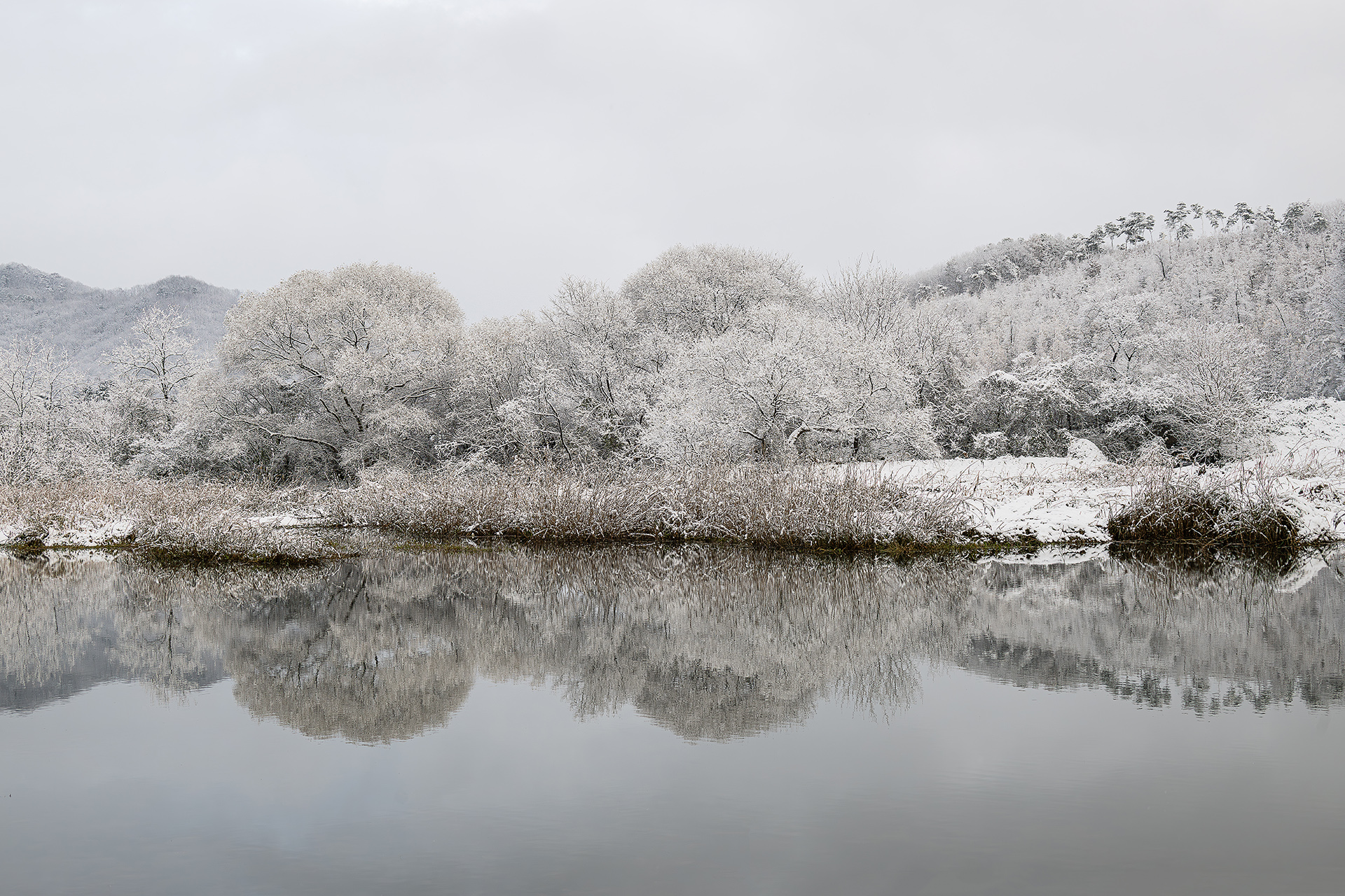 첫눈이 내린날 설경.