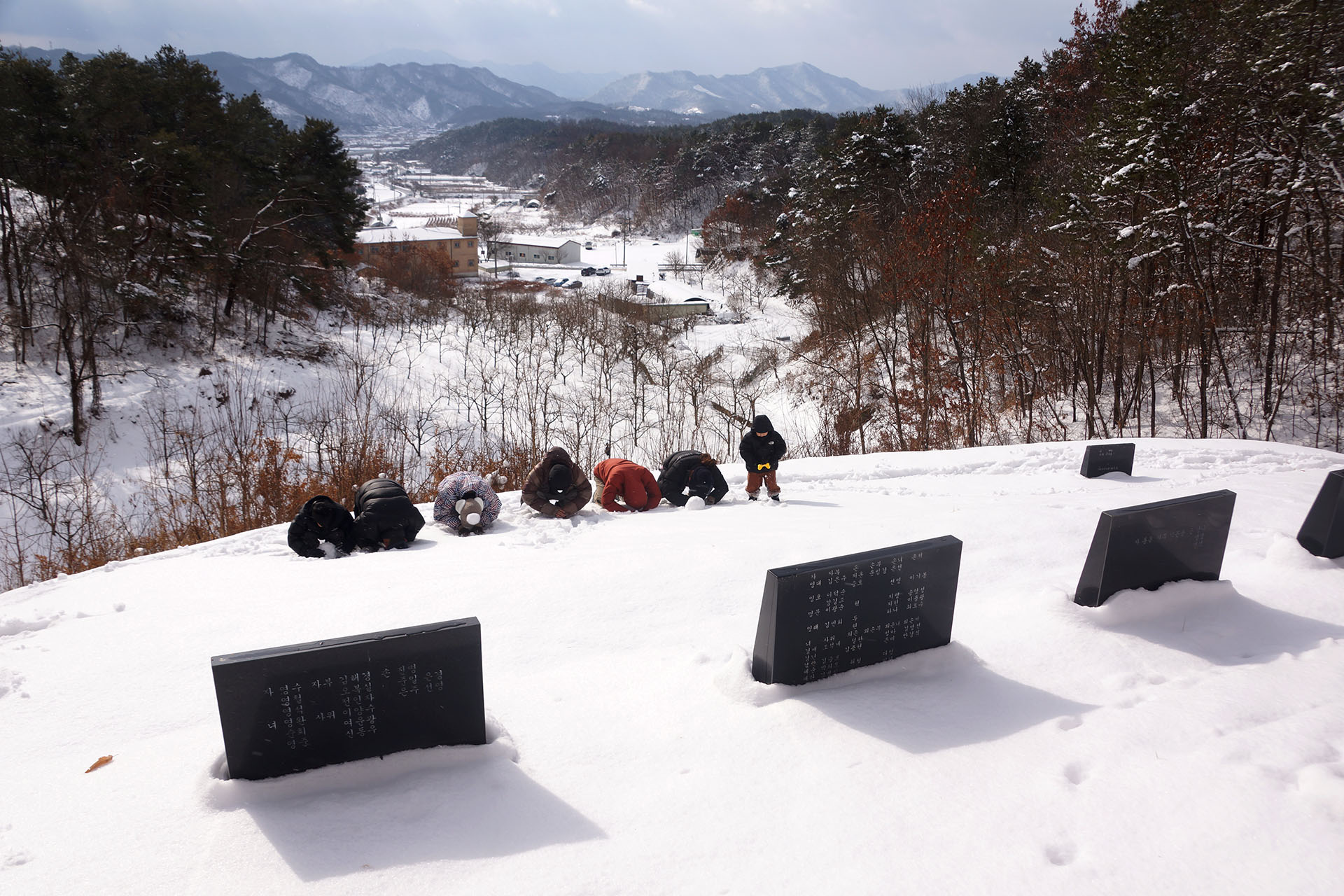푹? 빠지는 눈길을 미끄러지면서도