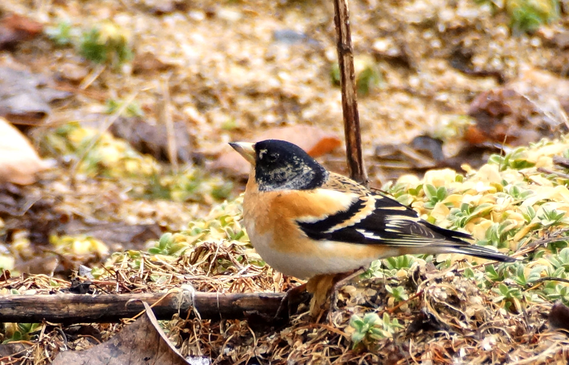 내려 앉아 먹이질을 하는 새를
