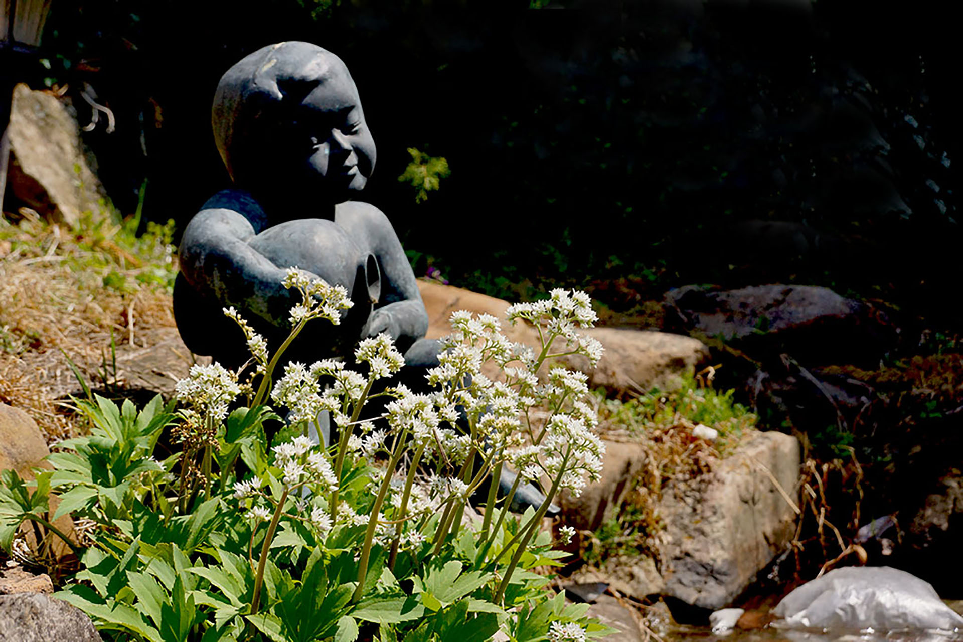 옆 집 조카네 마당에는 작은 연못이 있어유.