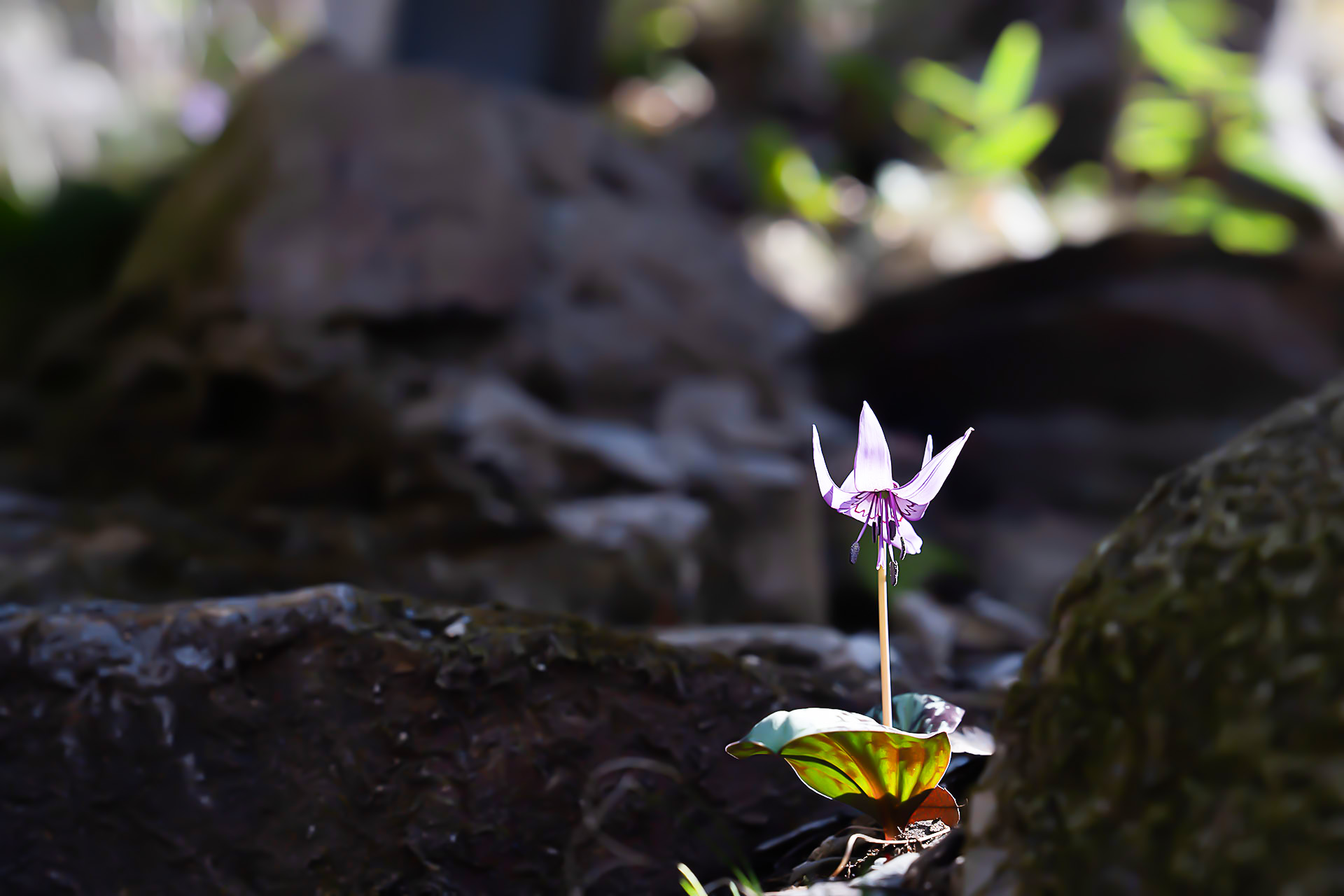 등산로 철계단 아래서 도도하게 서 있는 얼레지입니다.