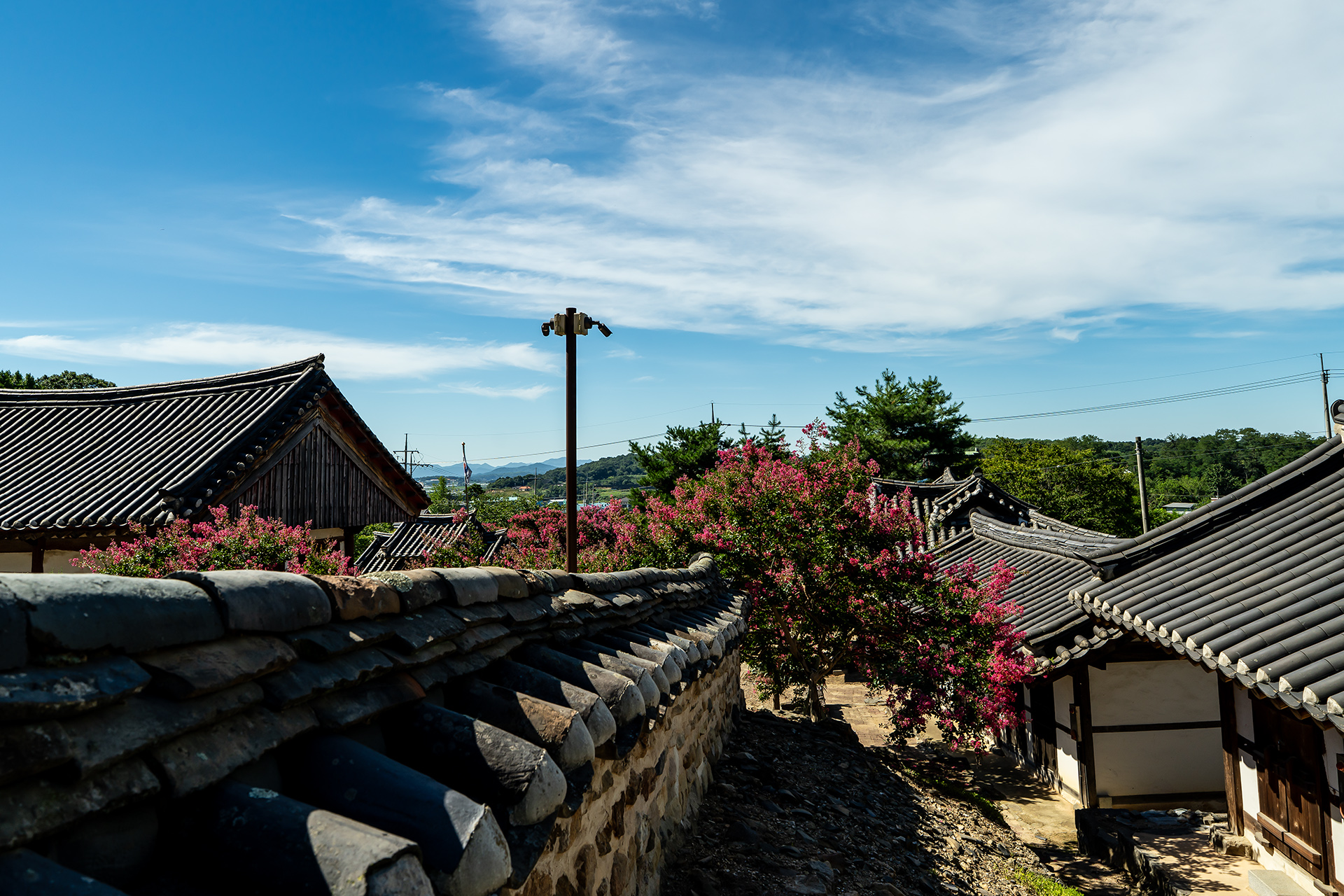 기와와 돌담이 어우러진 노성향교의 배롱나무입니다.