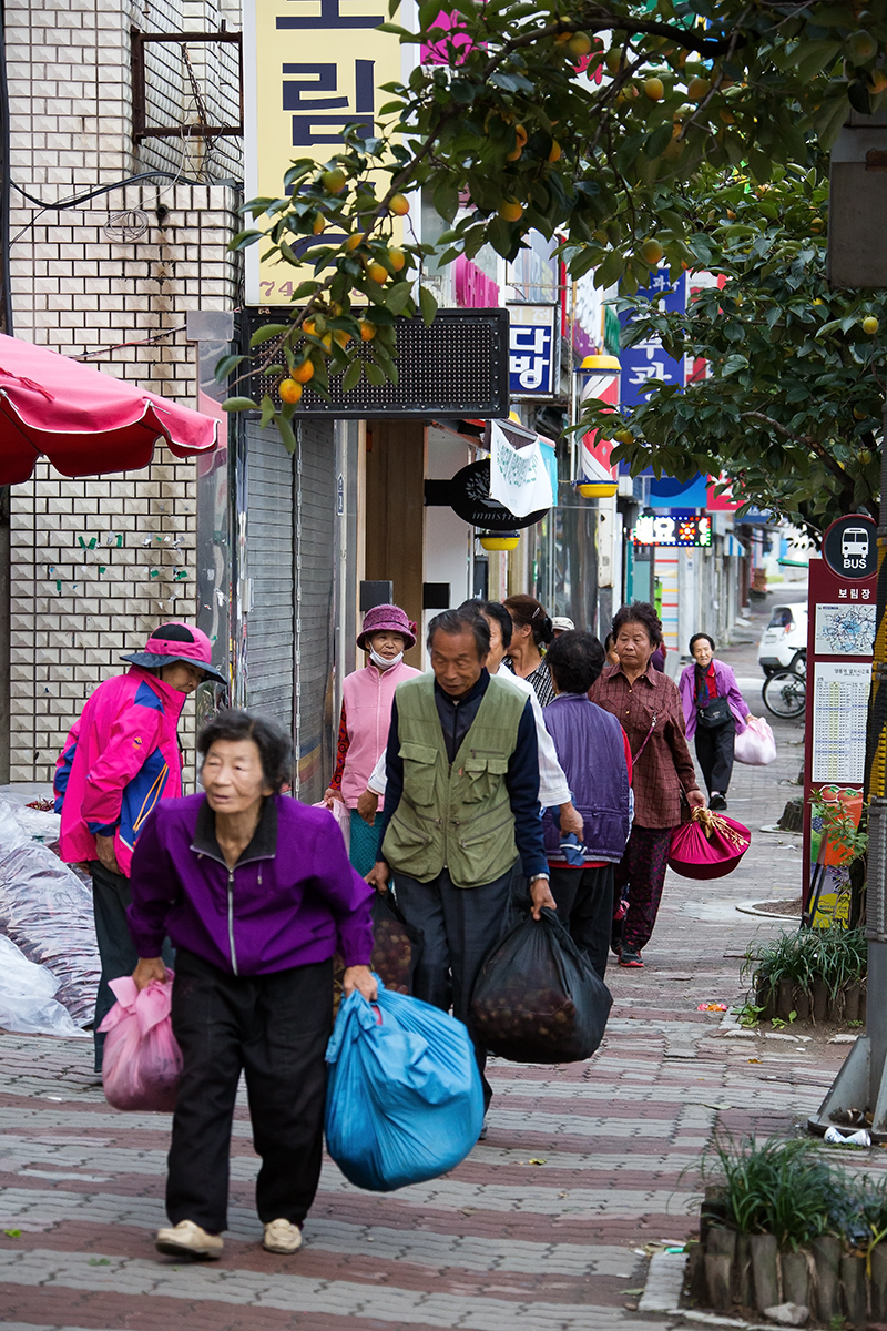 아침장 보러오시는 행렬