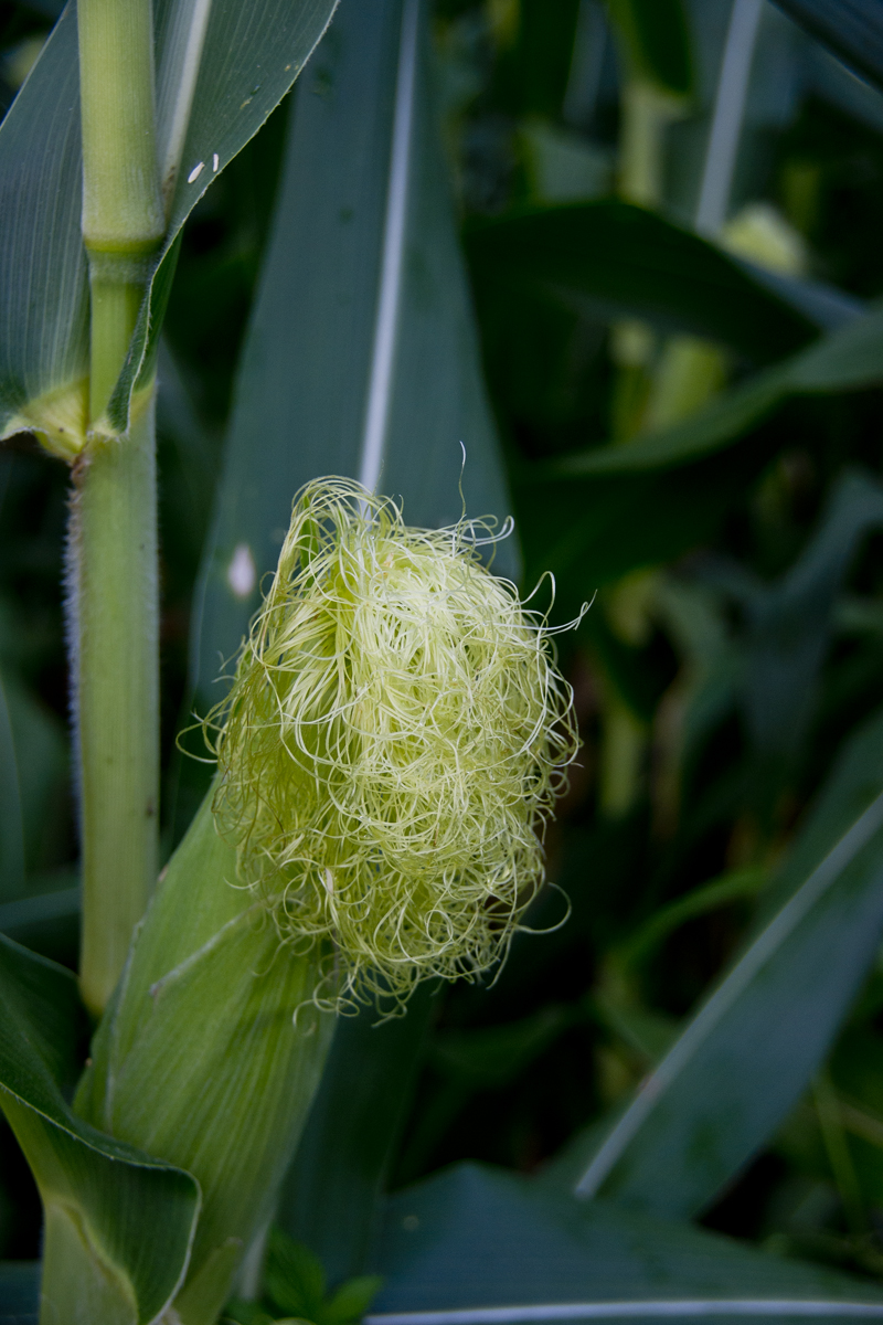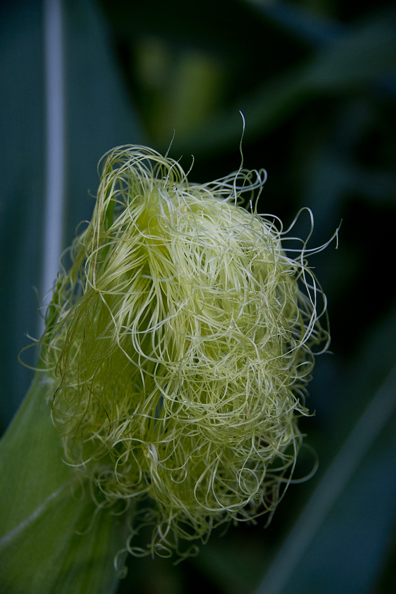 옥수수는 흰머리가 붉은 머리로 변해야 비로소 씨앗이 영글게 되지유.