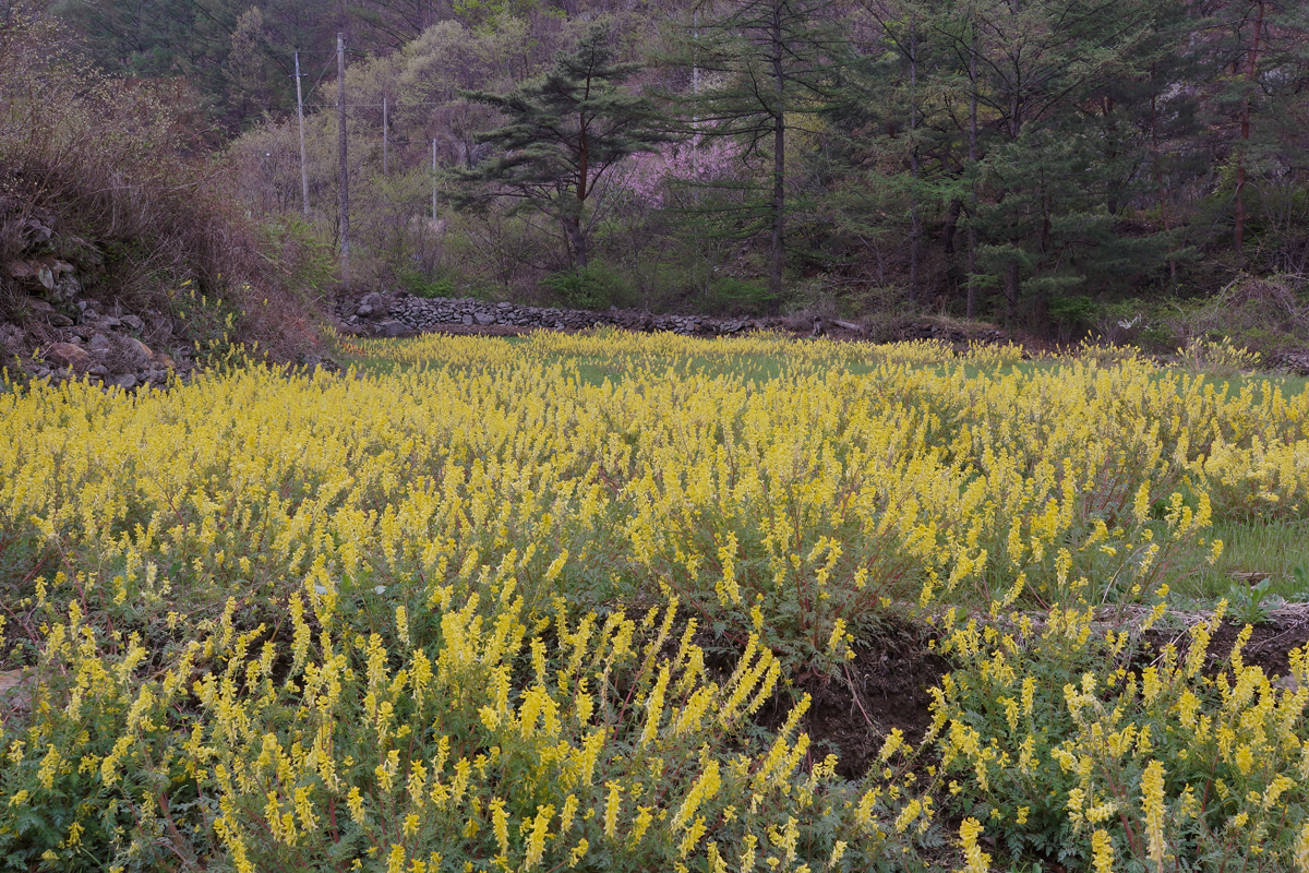 어제 용화 에서 도마령 넘어 상촌 오는길에 만난 괴불주머니 군락