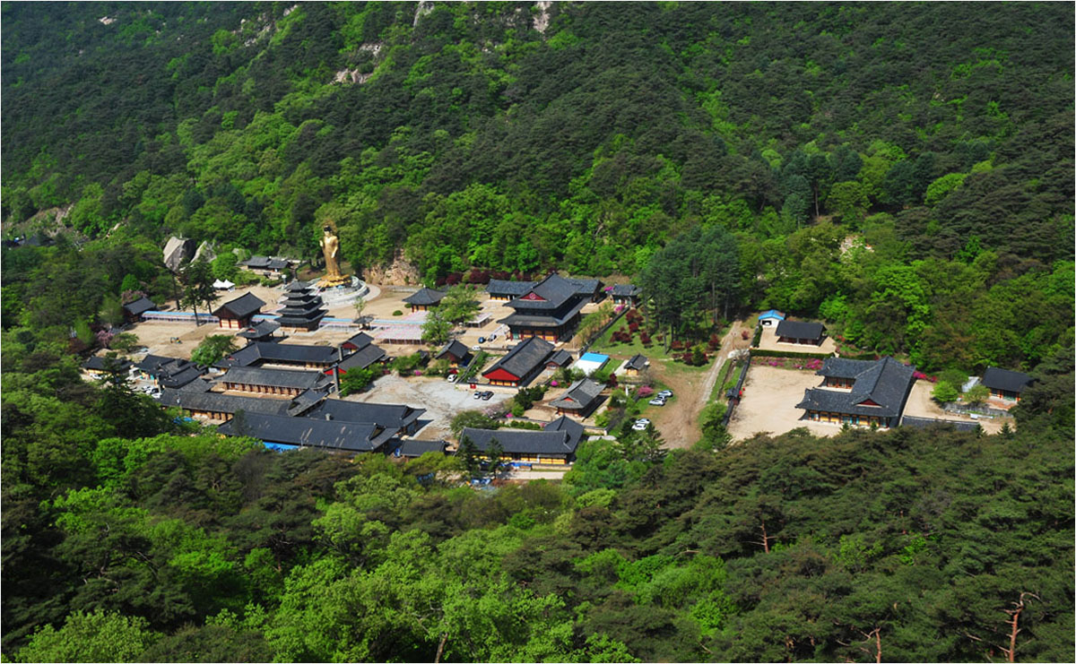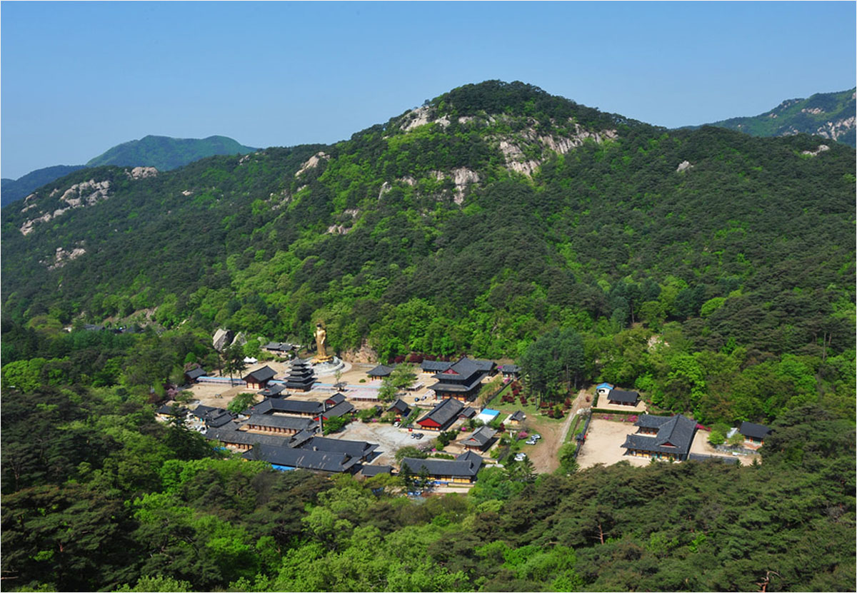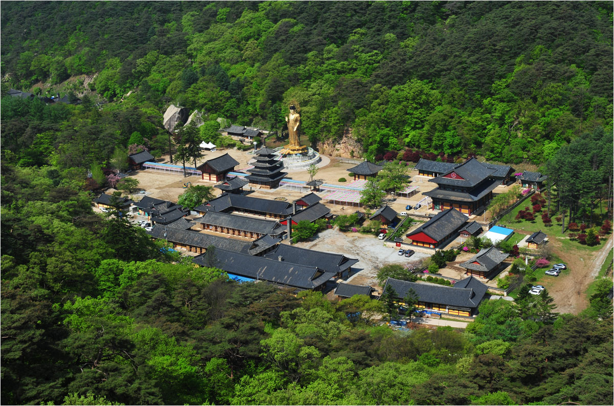 초파일 연등 매달기작업이 한창인 법주사 실록의 풍경..