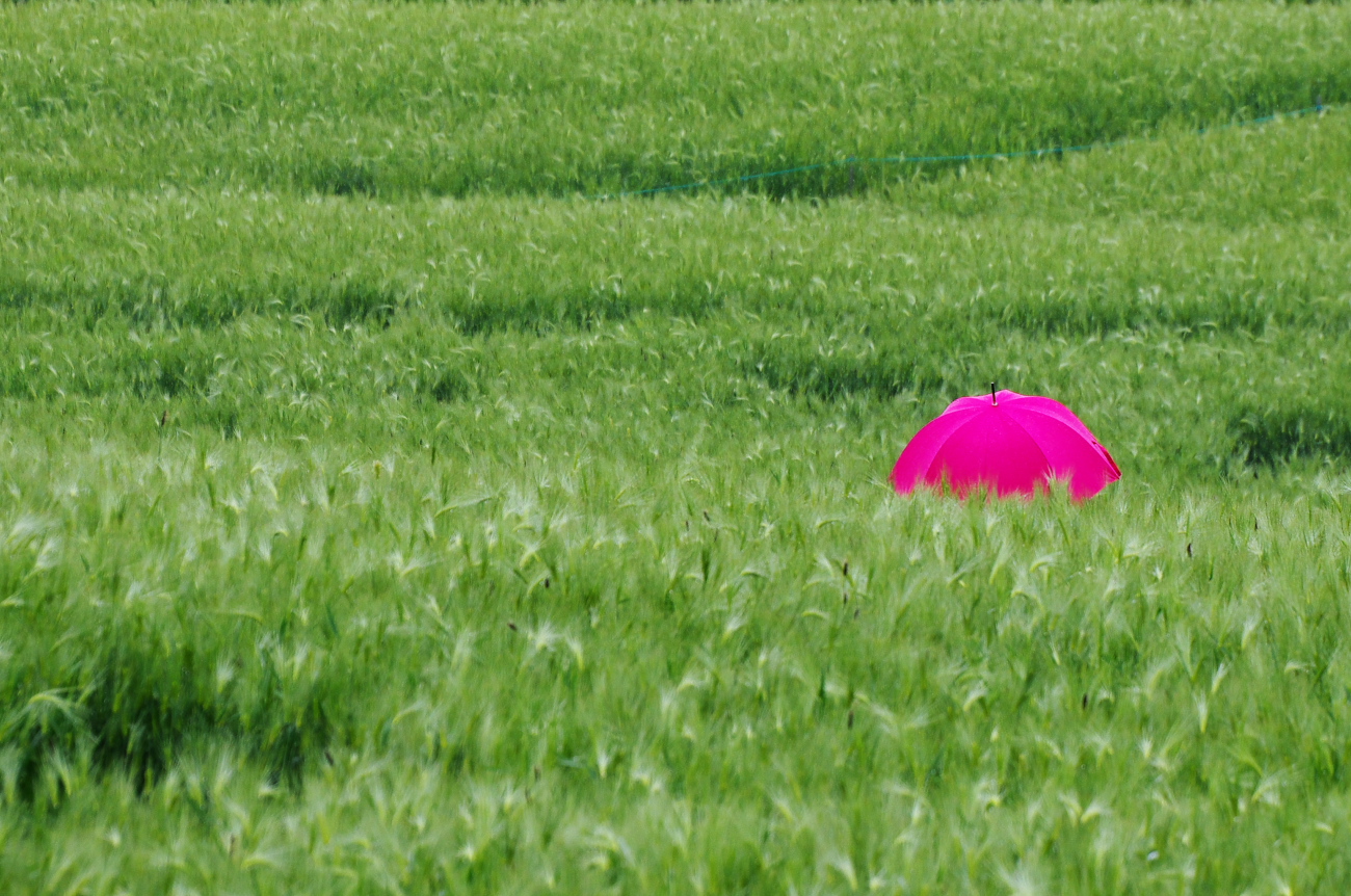 보리밭 사잇길에 빨간우산을쓴 연인