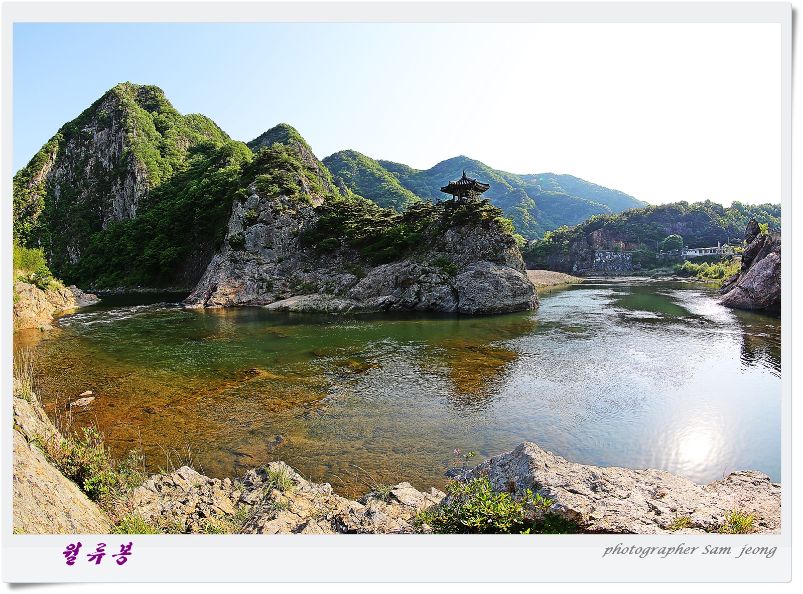 월류봉에 외롭게 피어있는 수달래꽃 한송이....