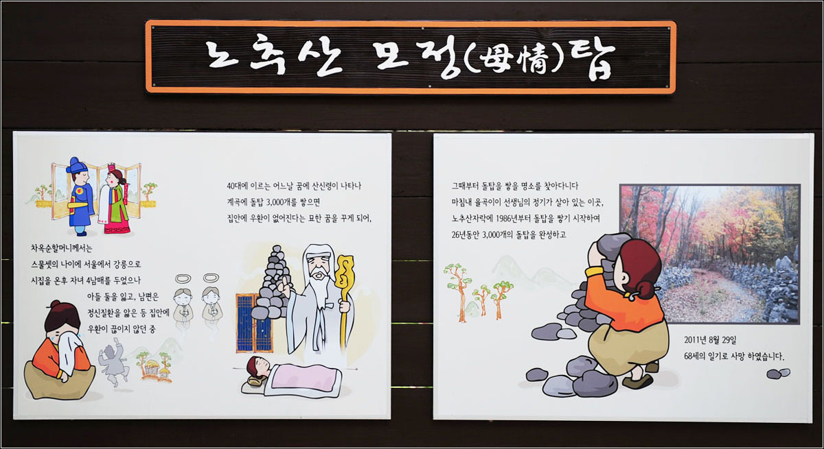 1986년부터 26년간 40대여인이 강원도 노추산 자락에 3000개의 돌탑을 쌓았다는 모정탑을 다녀 왔습니다