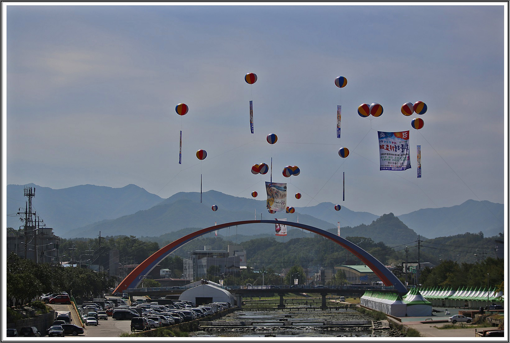 영동천 주변. 하상 주차장에서 행사가 열린다네요.