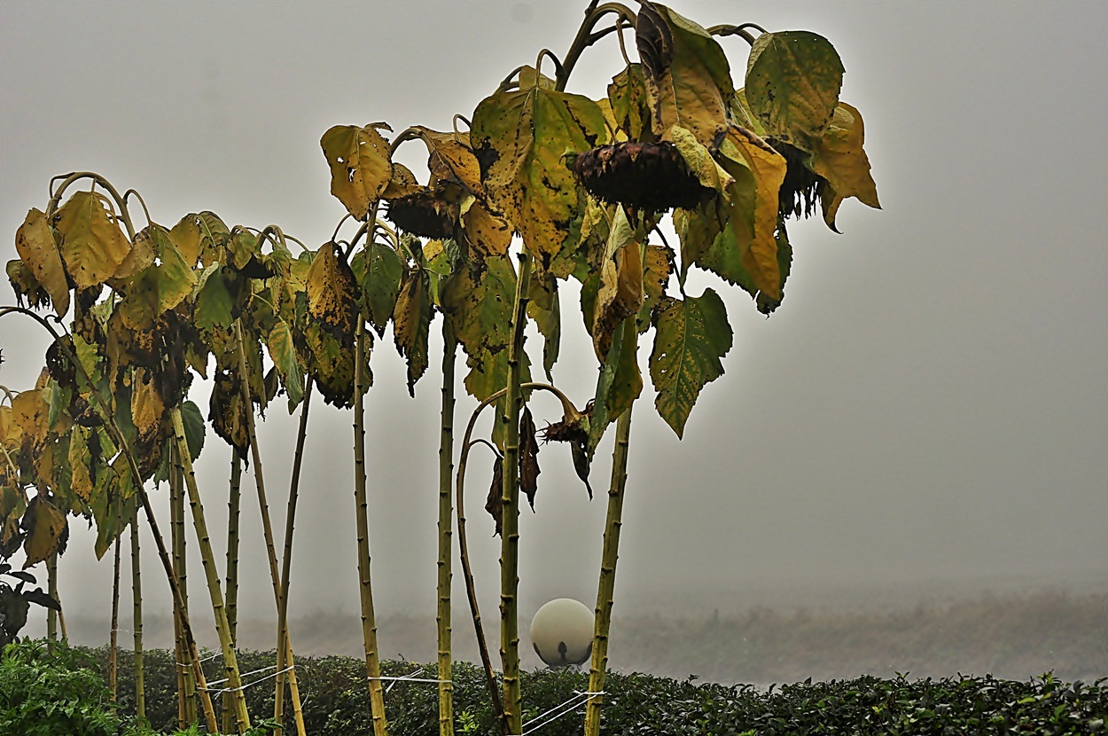 한 여름날 숙제를 다 못한 해바라기는 고개를 떨쿠고 안개자욱한 찬이슬에.... *