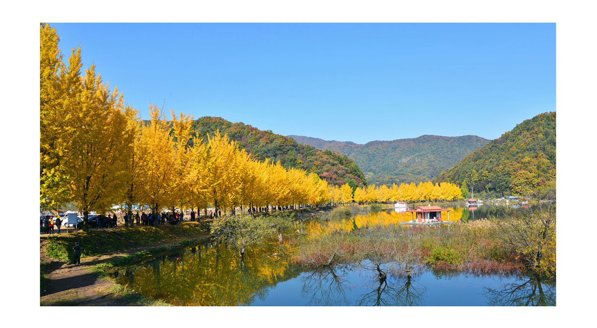 문광지 은행나무길의 절정