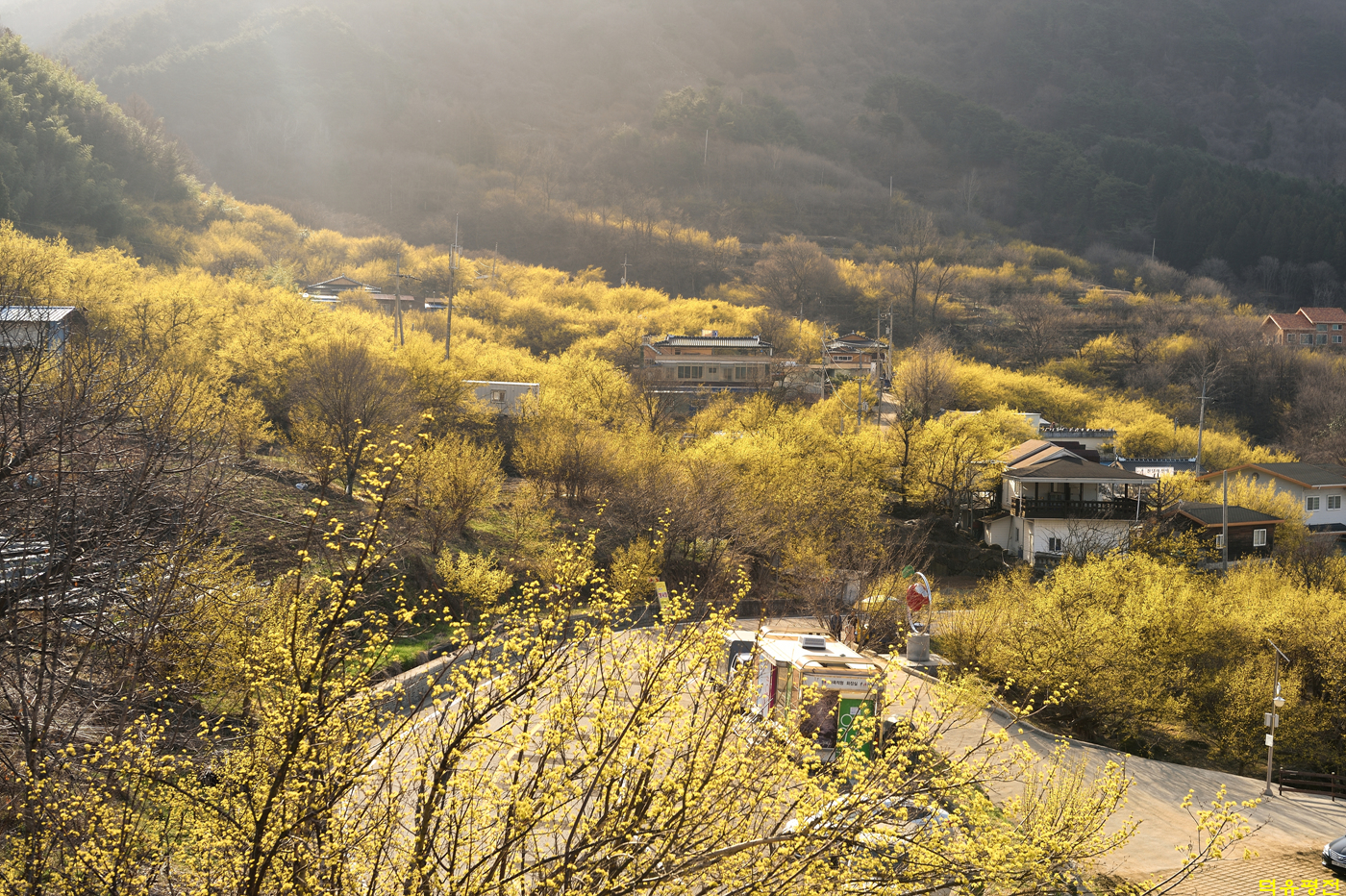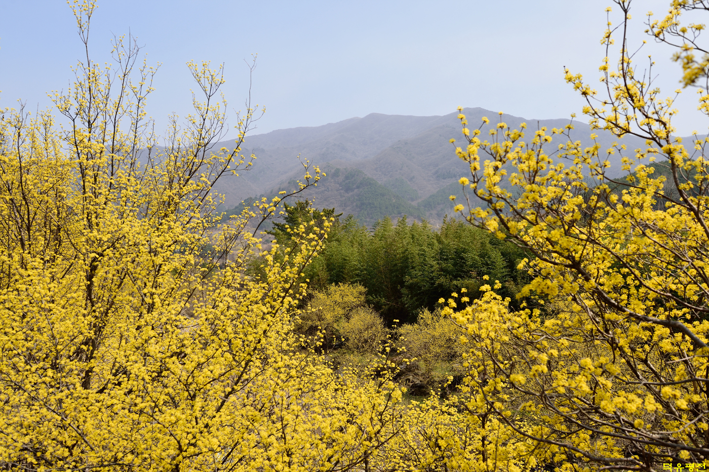 노오란 산수유꽃이 만개하였습니다.