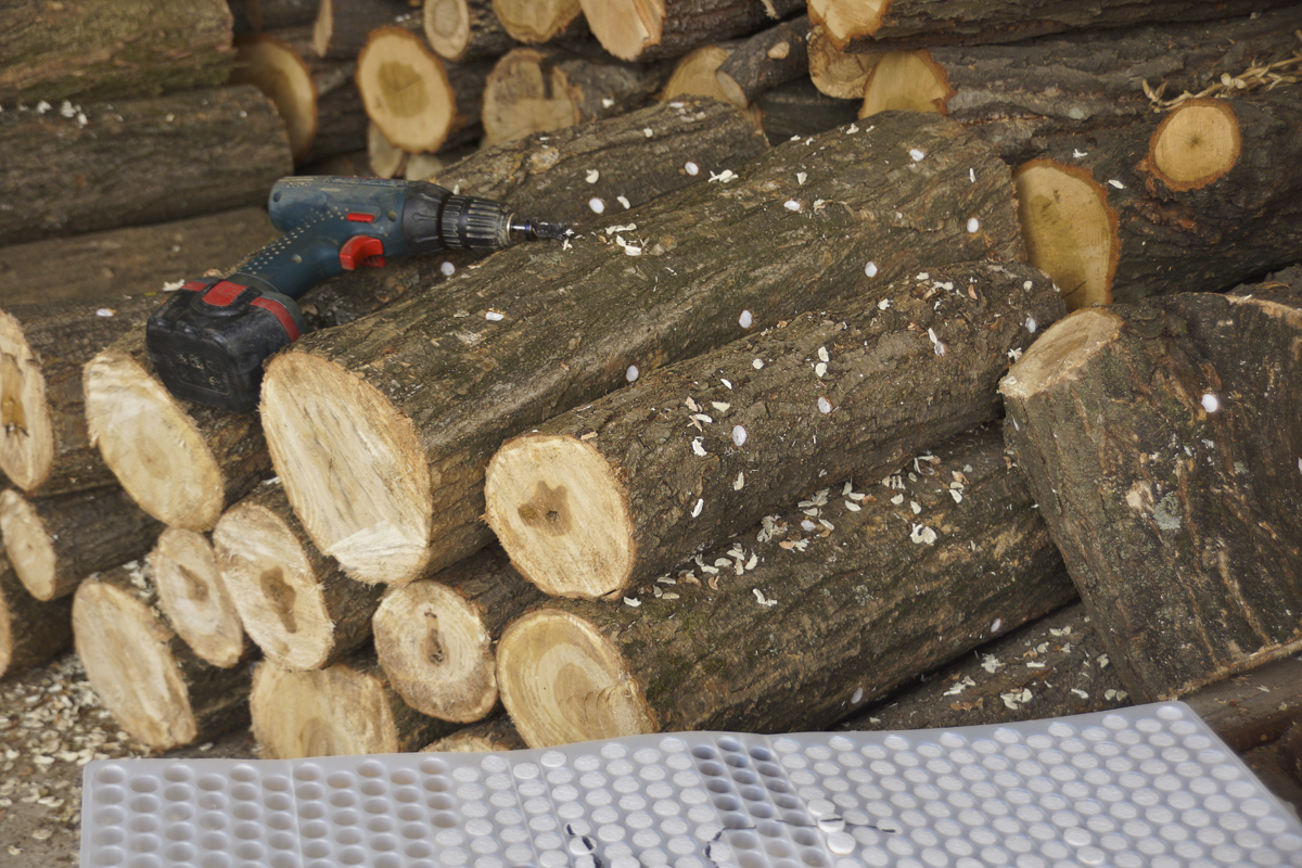 드릴 작업과 종균 넣기