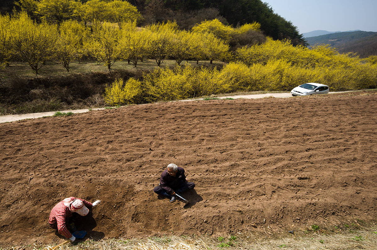 할머니는 밭 배수로를 판다며 삽으로 앉아서 한삽뜨고 한참쉬고
