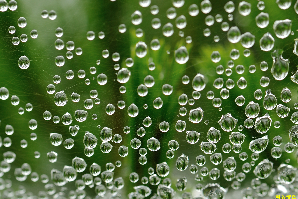 거미줄에 촉촉히 매달려 있습니다.